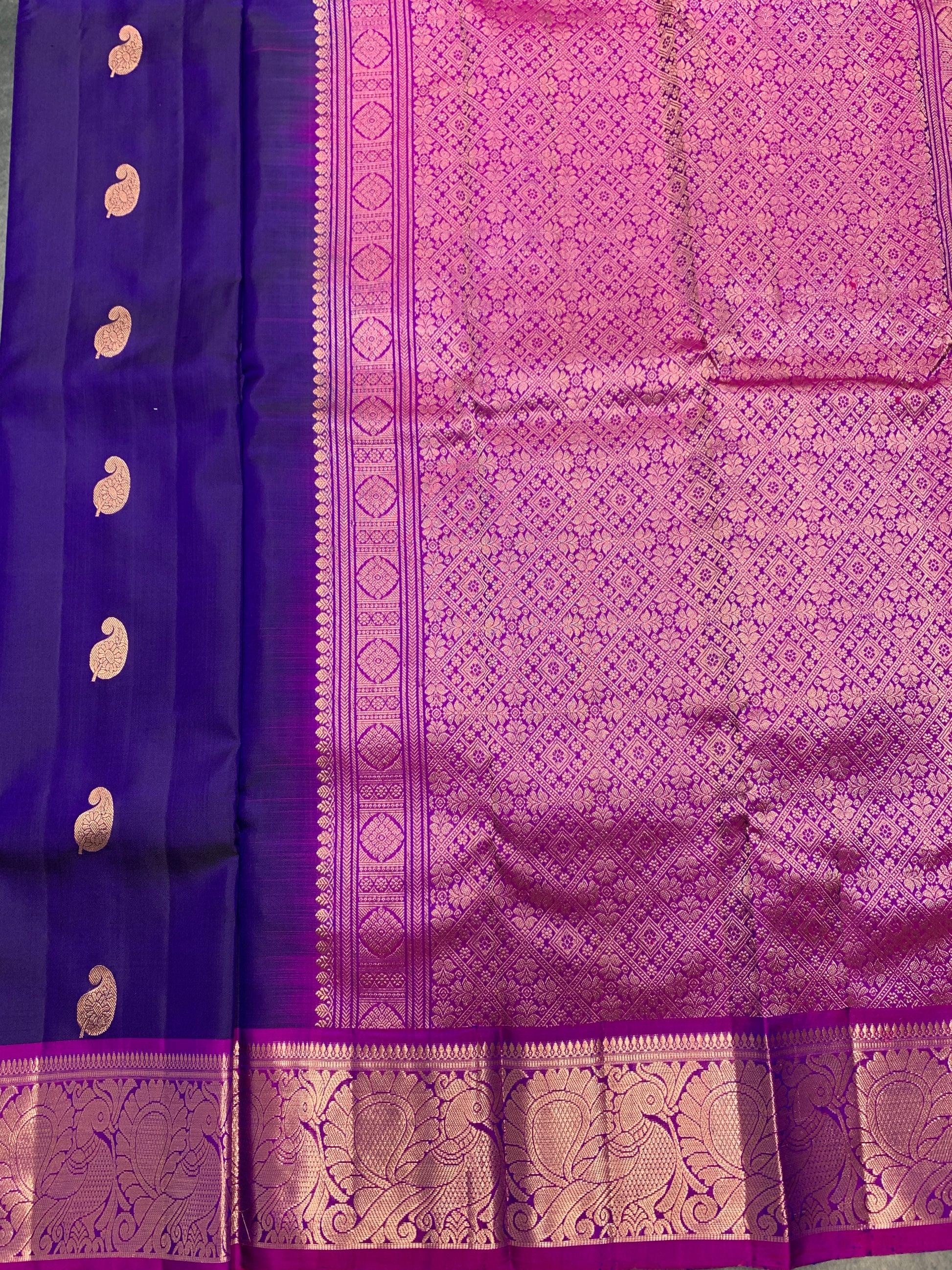 Pure Kanchipuram Silk Saree Blue Colour With Purple Border.