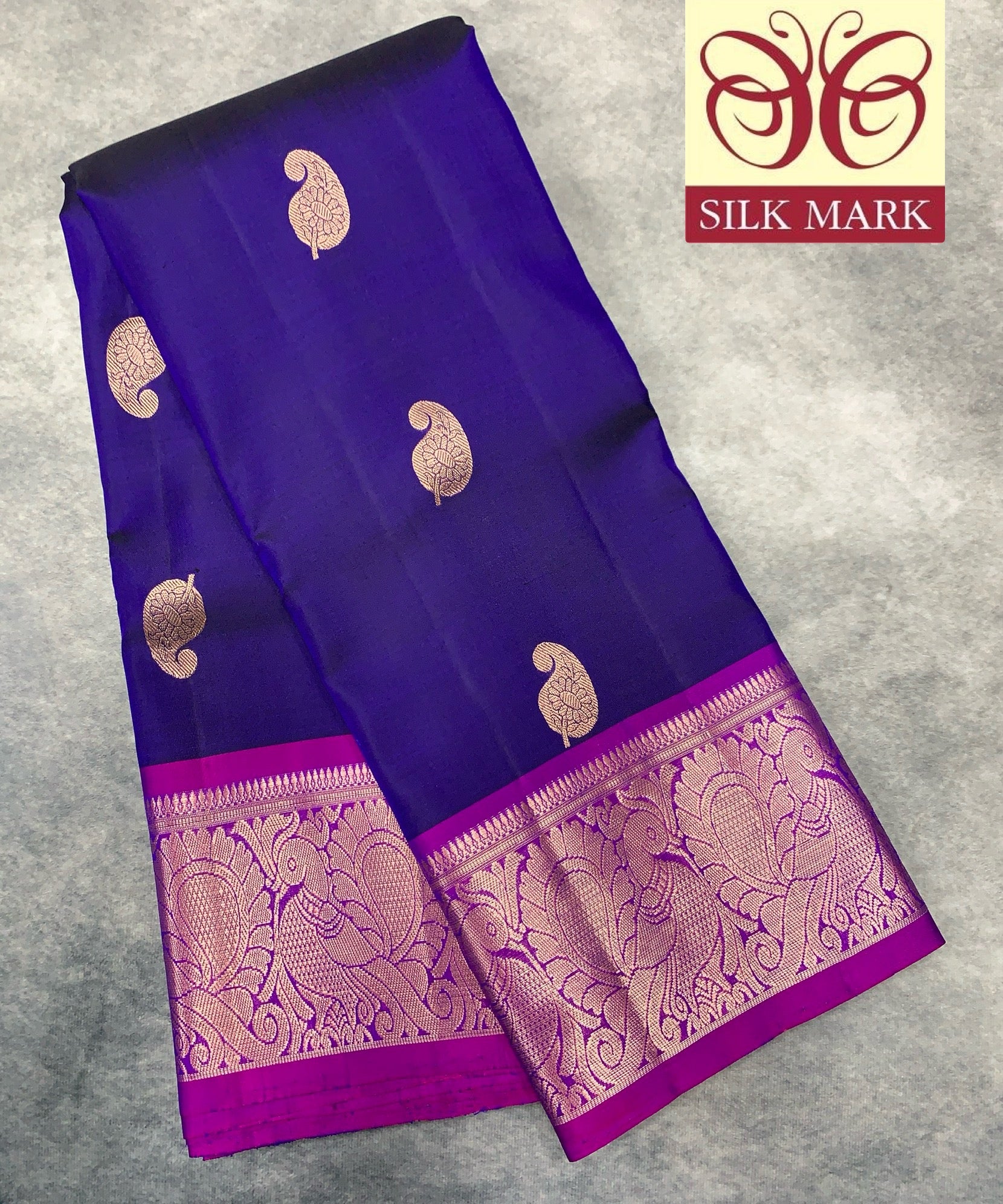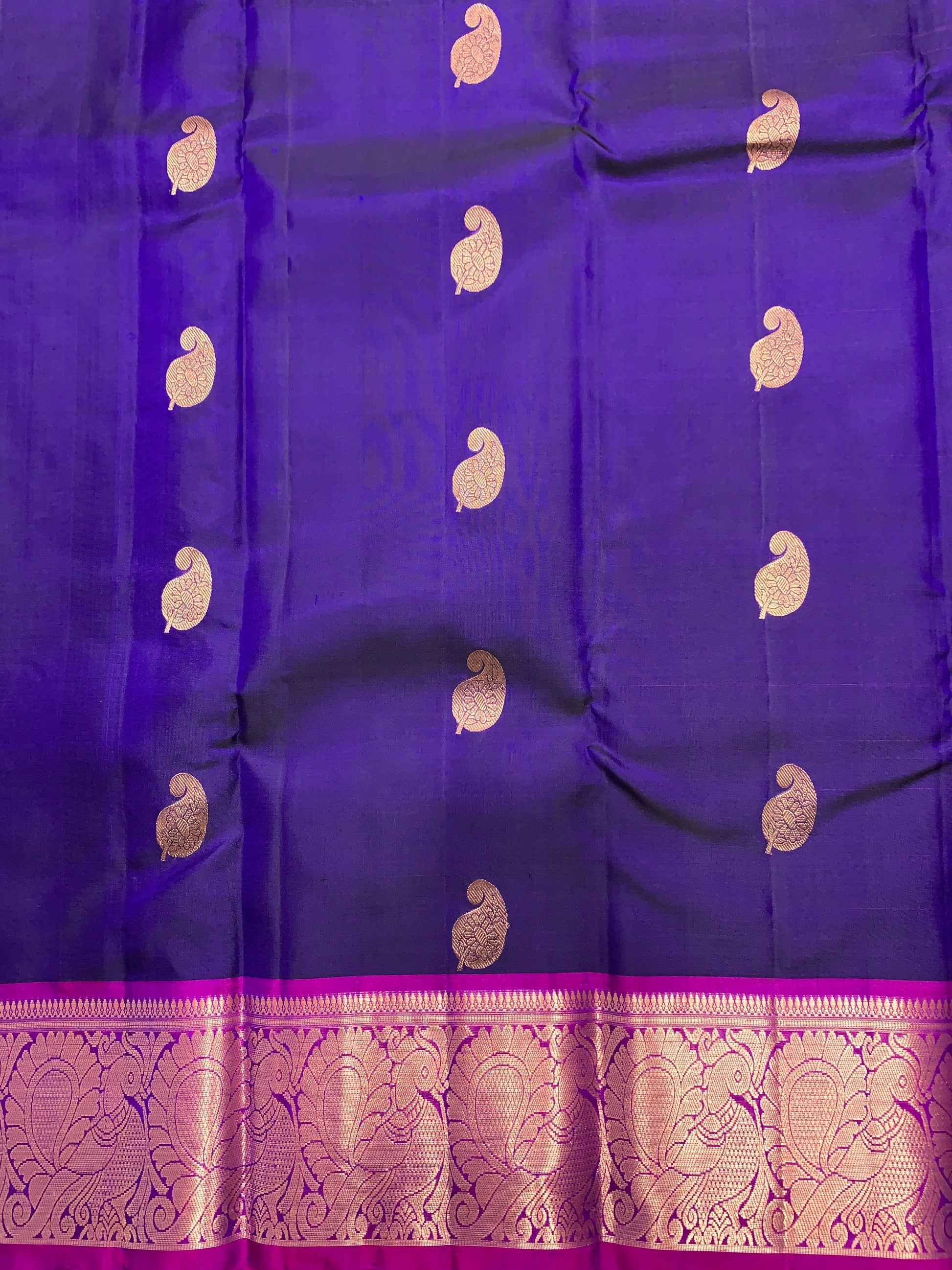 Pure Kanchipuram Silk Saree Blue Colour with Purple Border