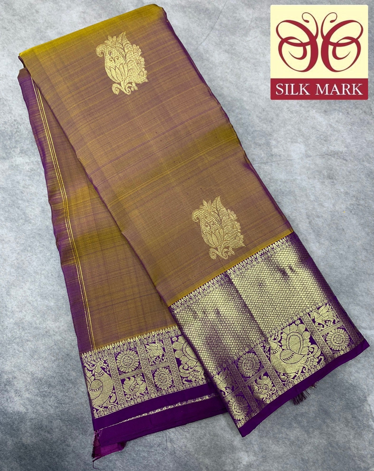 Pure Kanchipuram Silk Saree Dual Colour with Purple Border