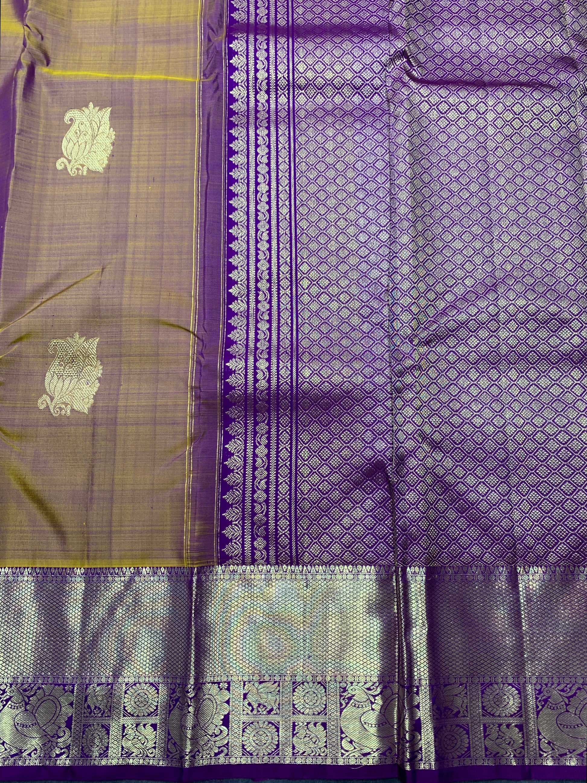 Pure Kanchipuram Silk Dual Colour with Purple Border