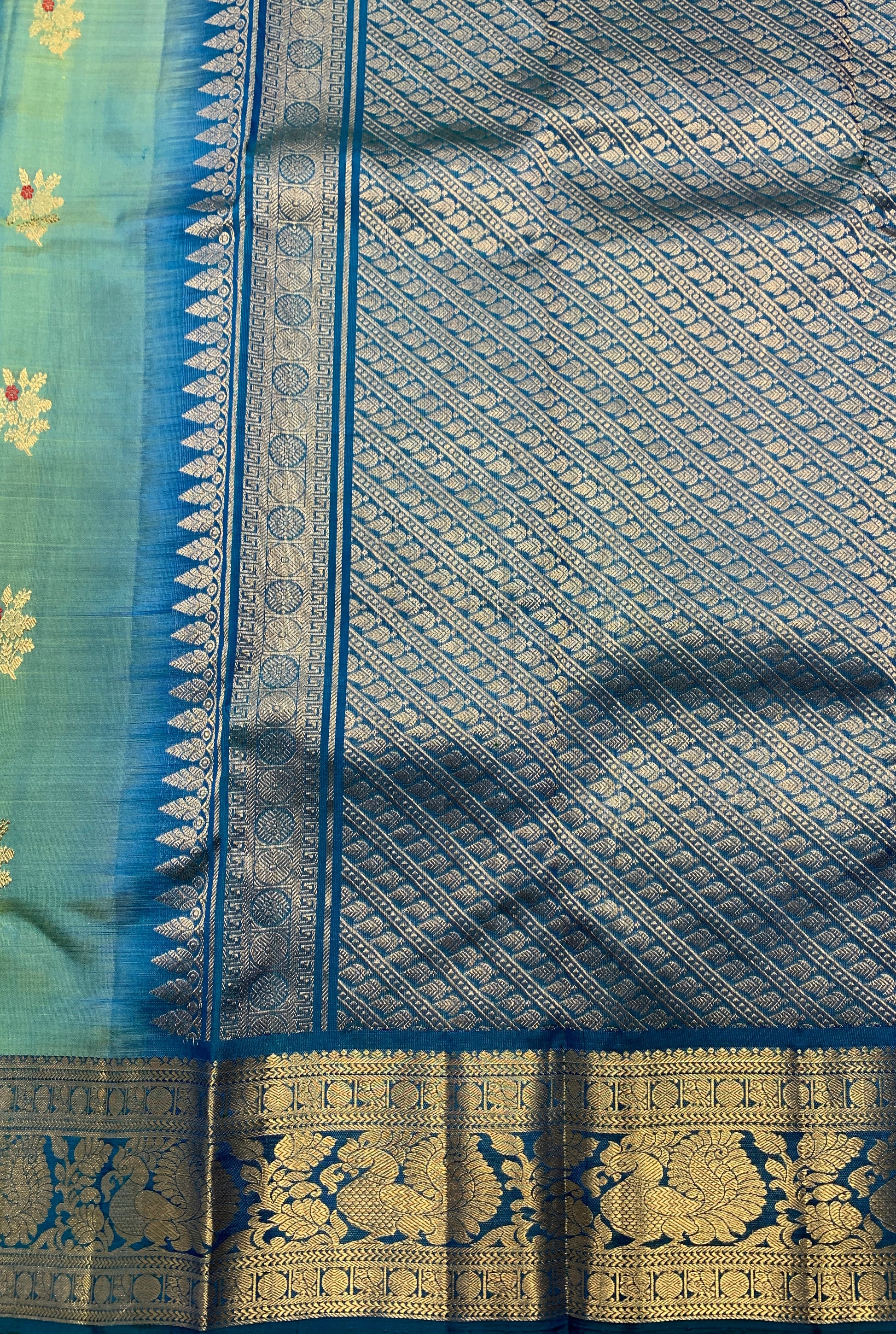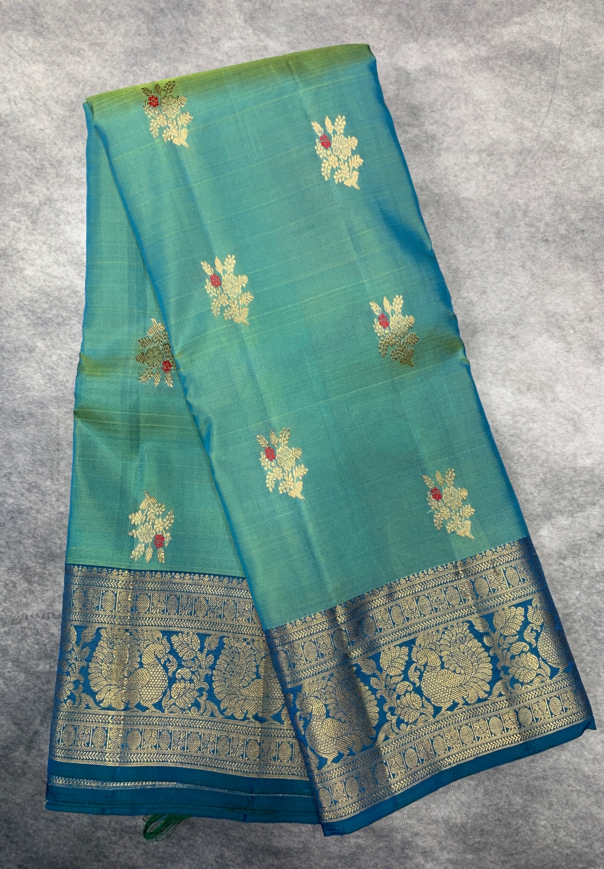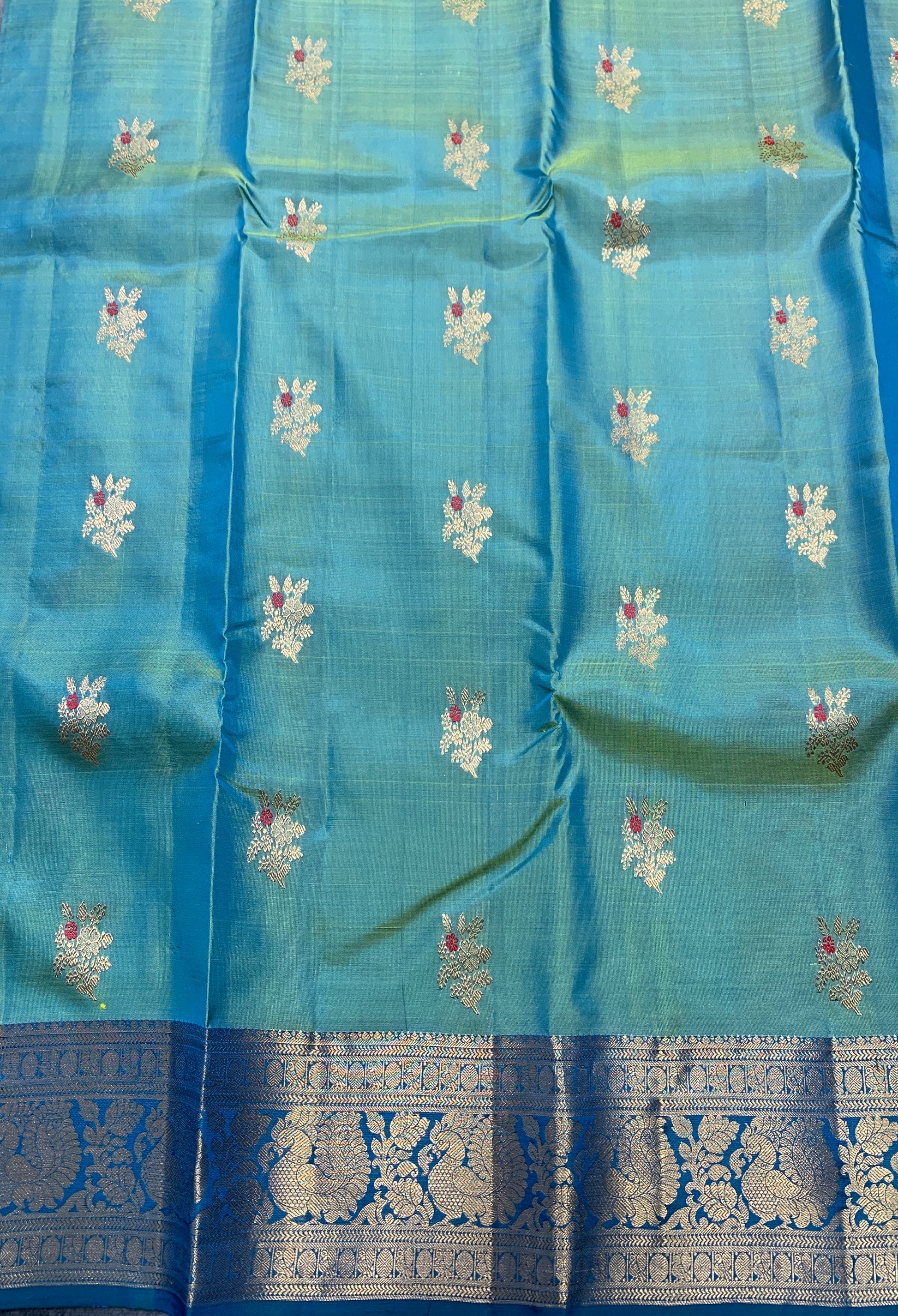 Pure Kanchipuram Silk Saree Dual Colour with Sky Blue Colour Border.