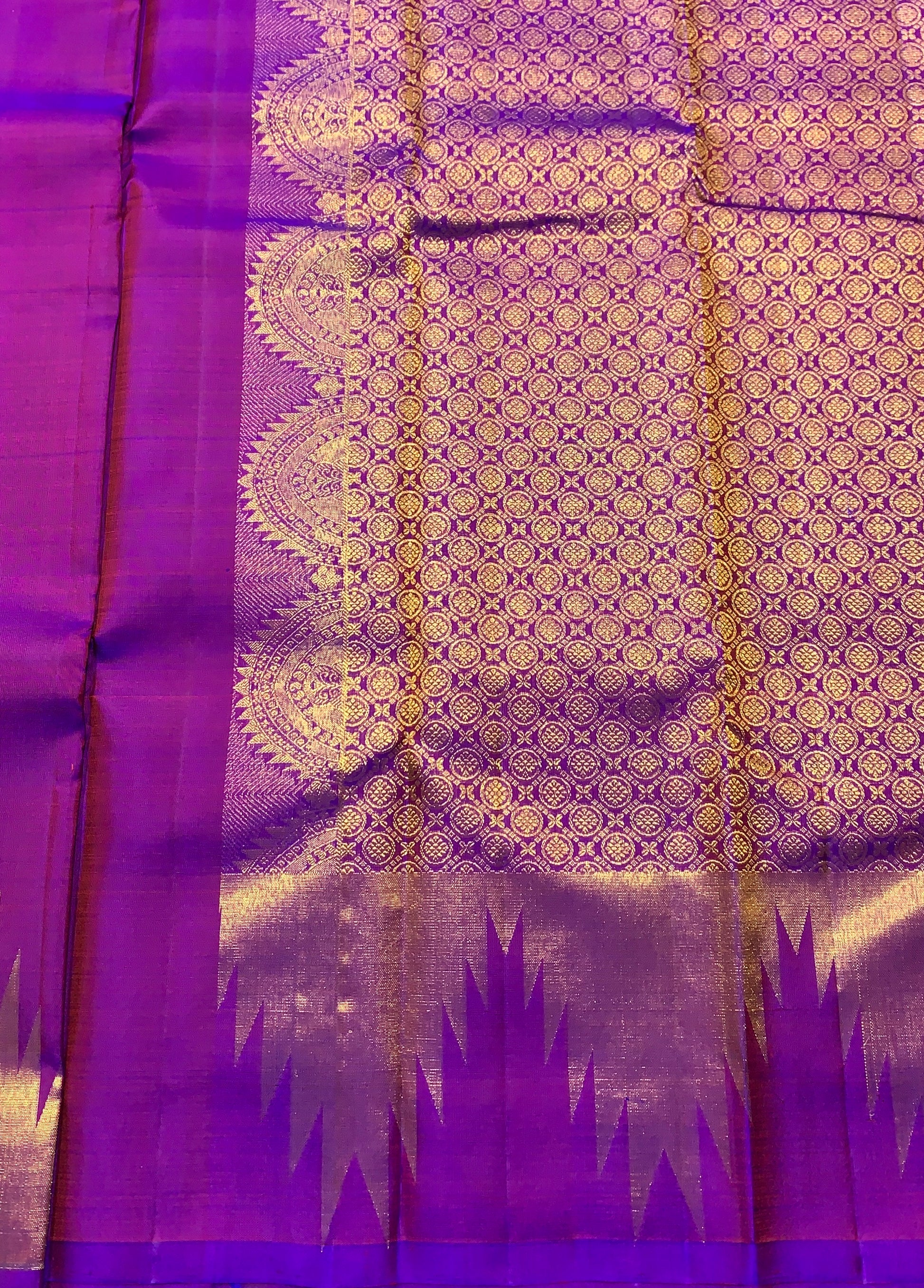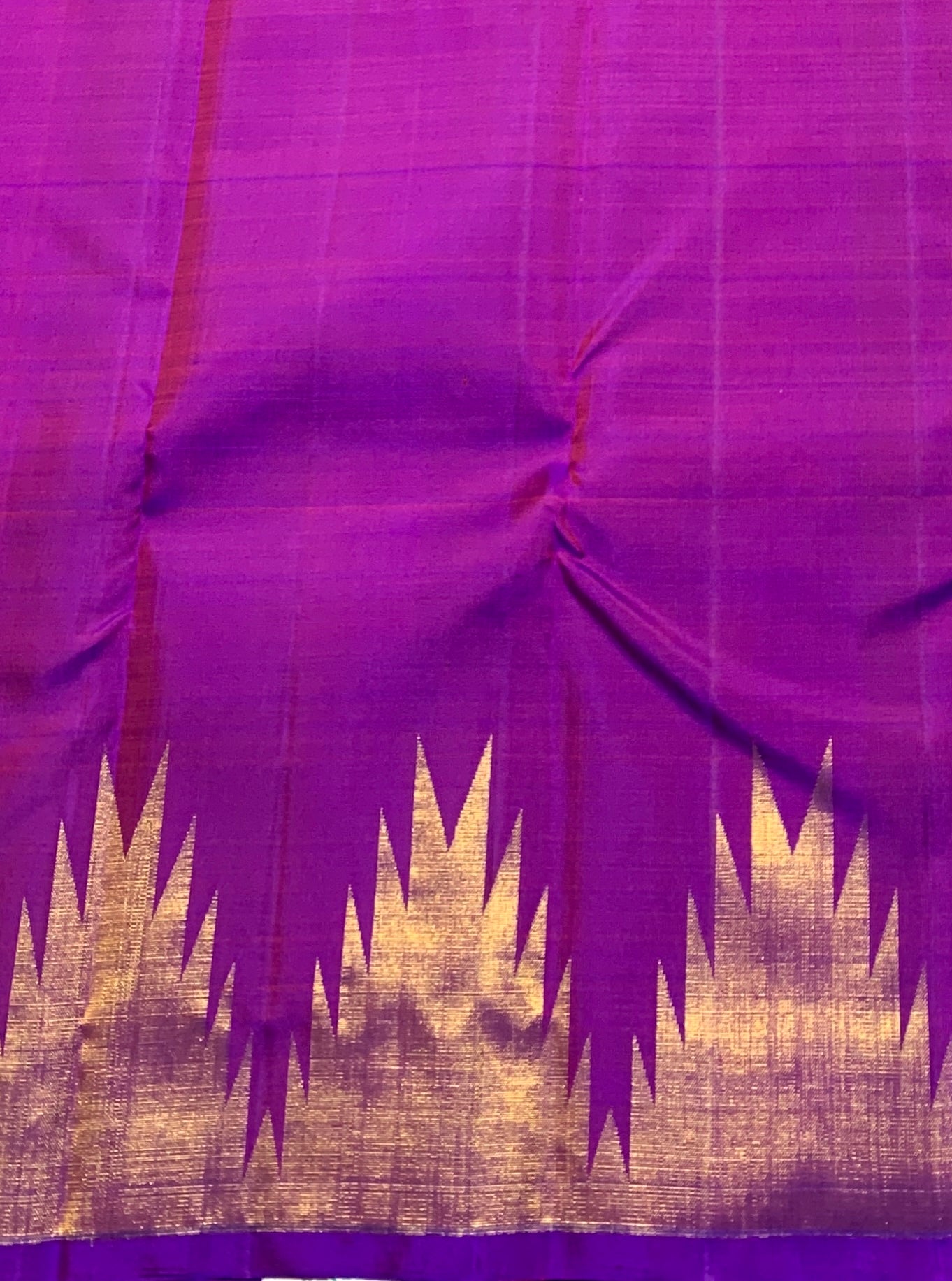 Pure Kanchipuram Silk Dual Magenta Colour with Temple Border.