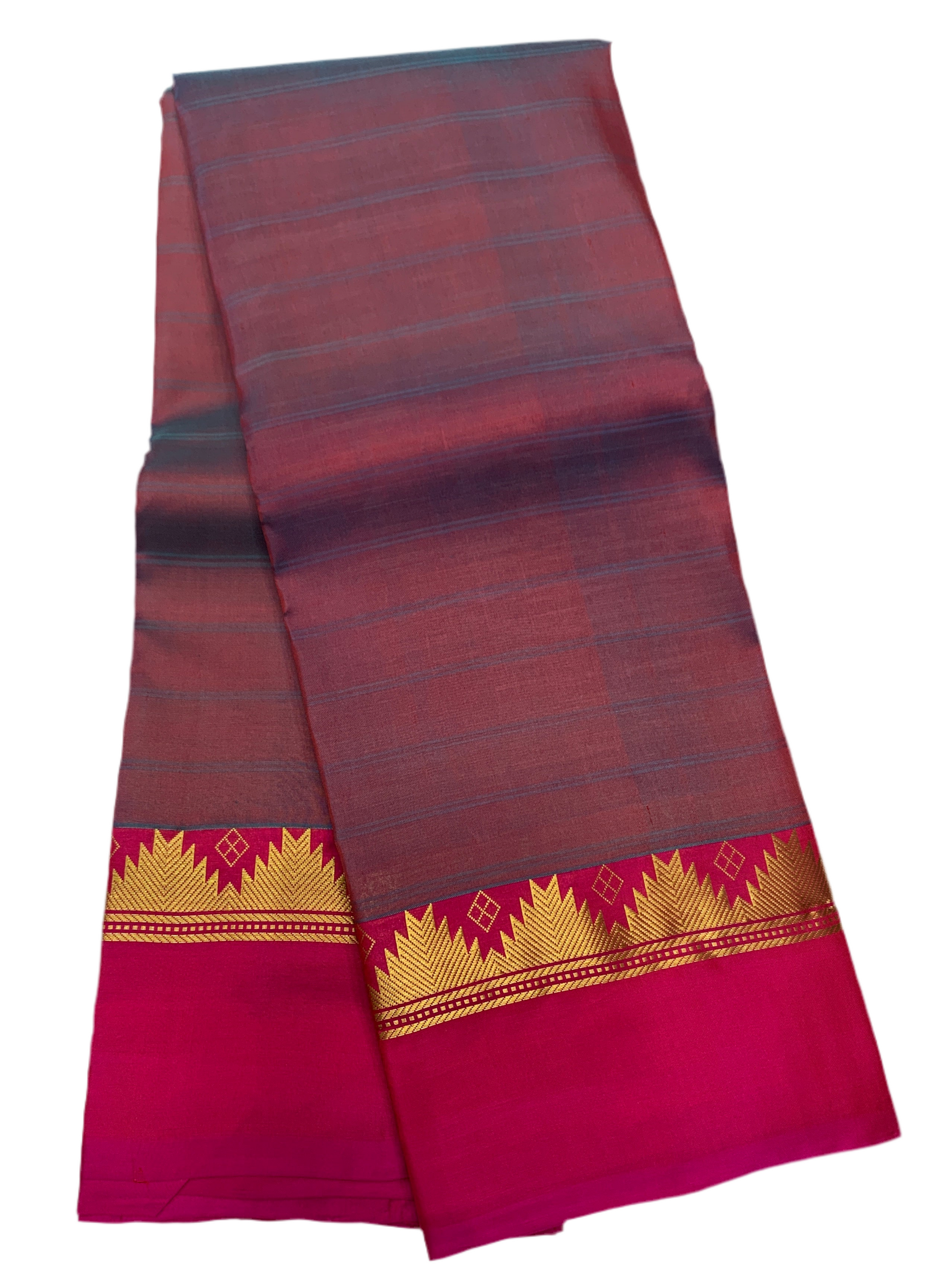 Pure Kanchipuram Silk Dual Colour with Pink Border.