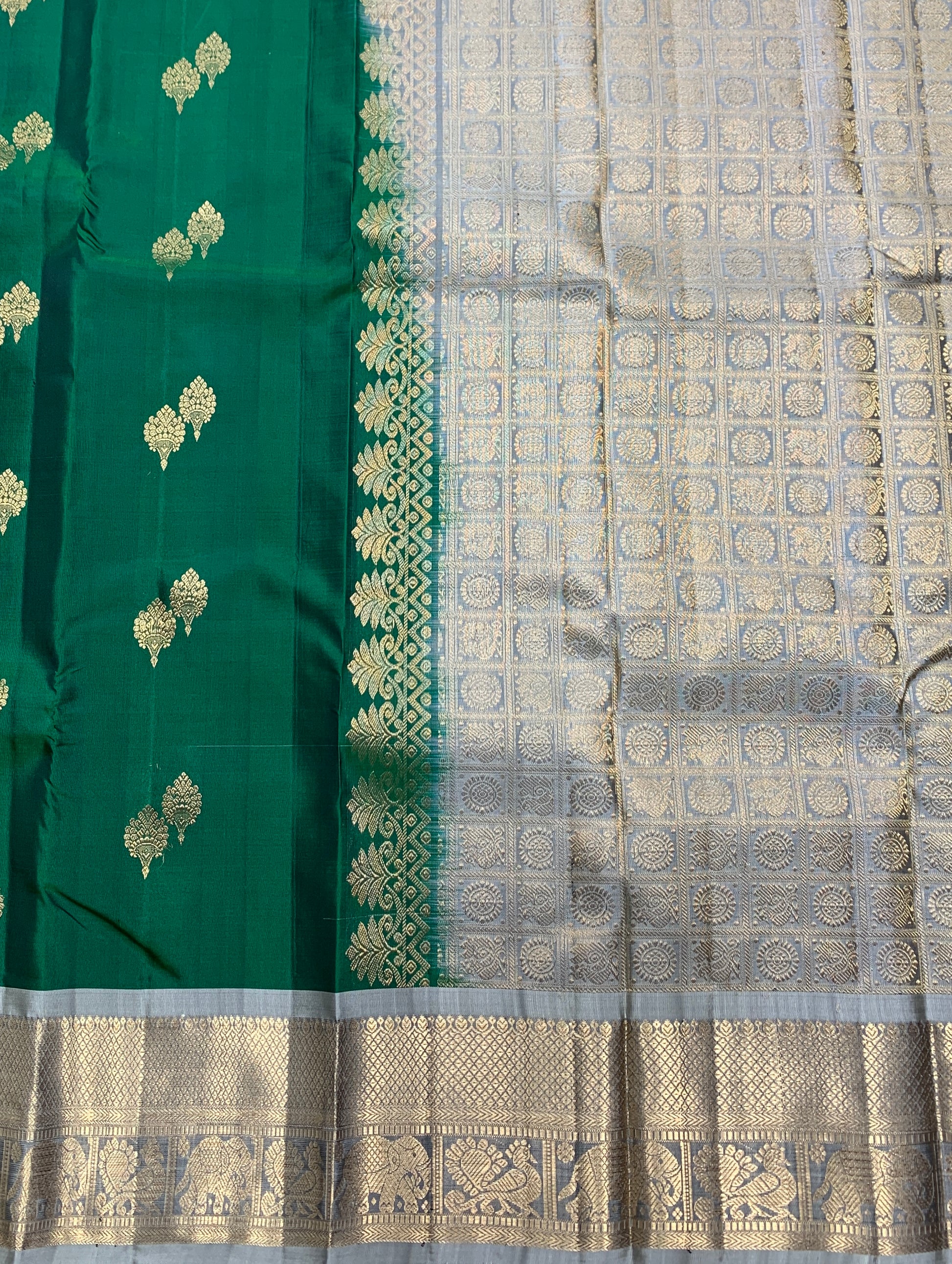 Pure Kanchipuram Silk Saree Green Colour with Biscuit Colour Border