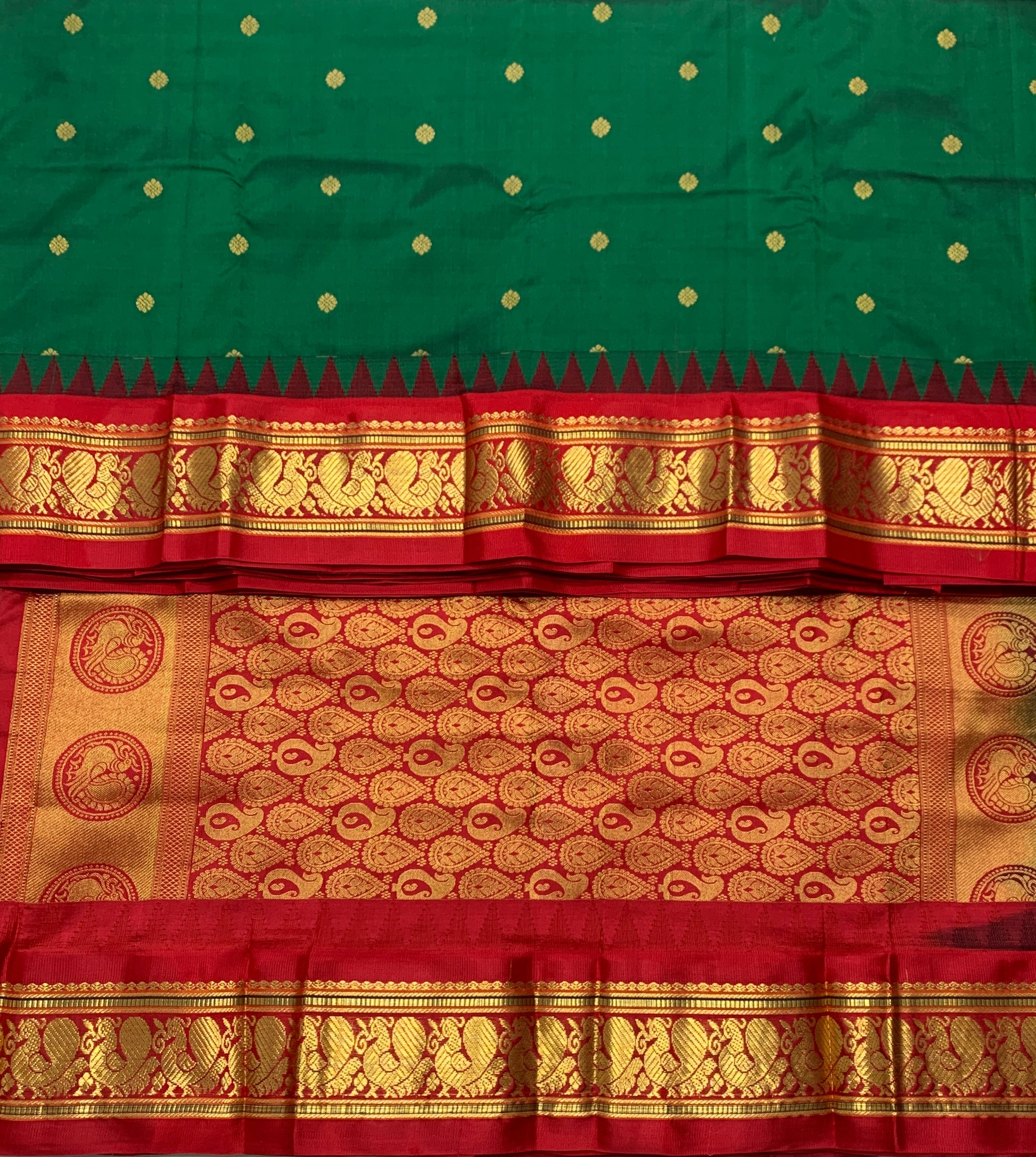 Pure Kanchipuram Silk Green Colour with Contrast Red Annam Border