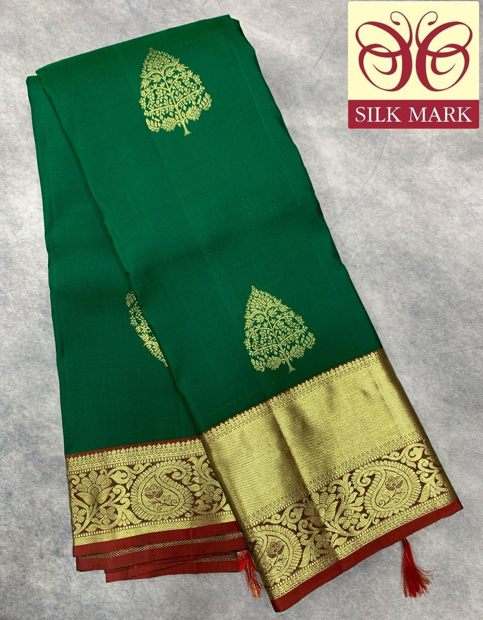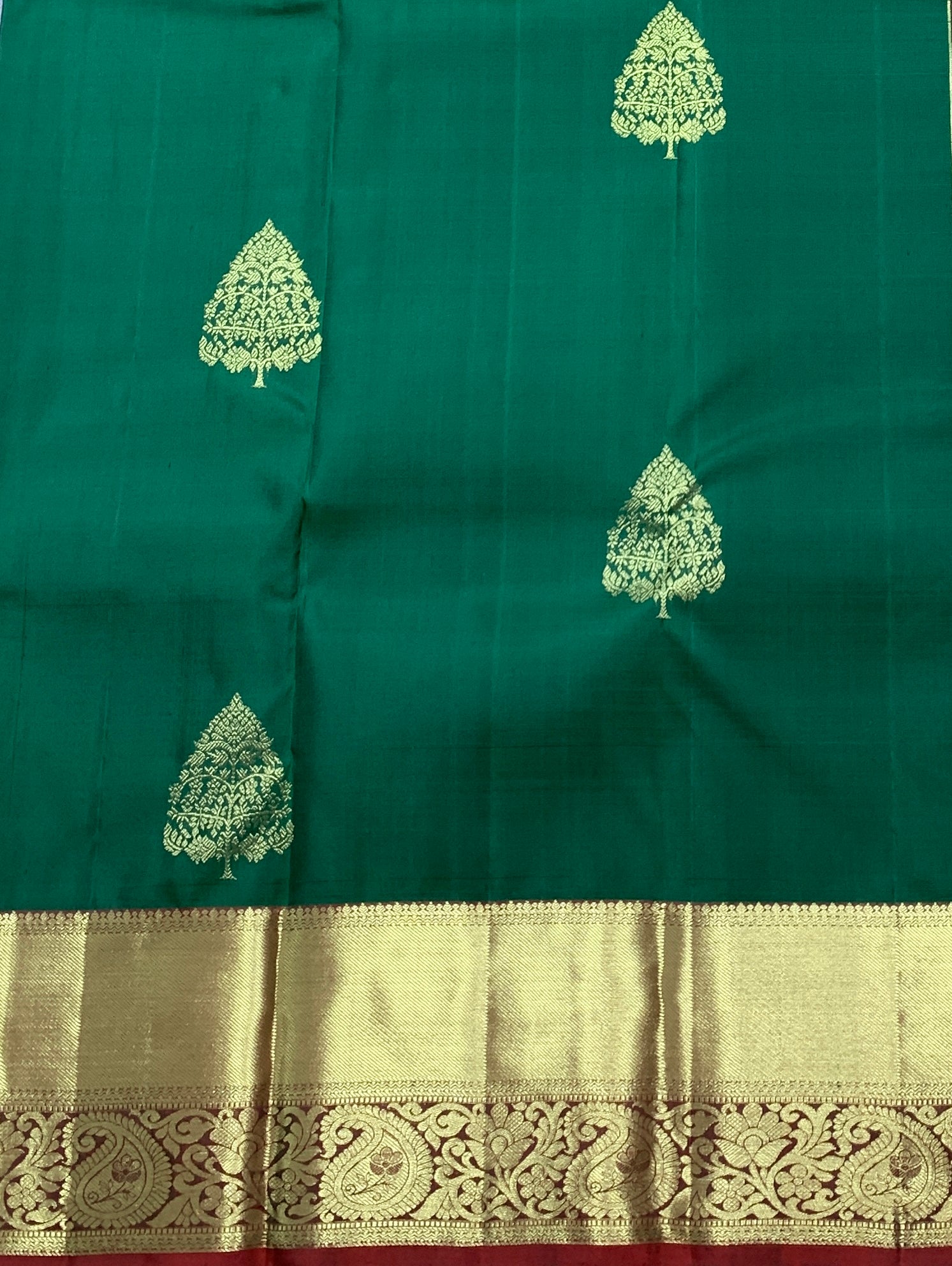 Pure Kanchipuram Silk Saree Green Colour with Golden and Maroon Border