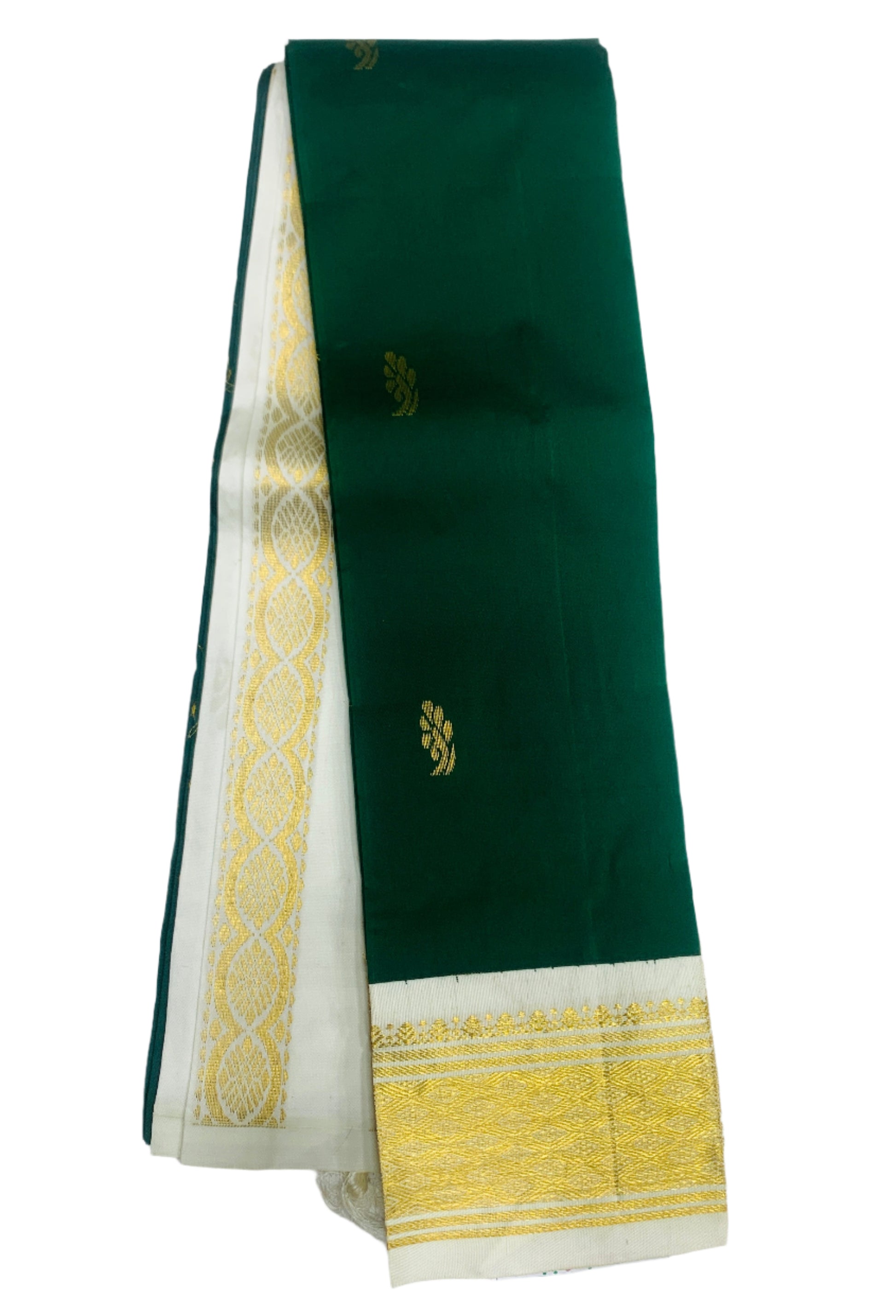 Semi Silk Saree Green Colour with White and Gold Zari Border