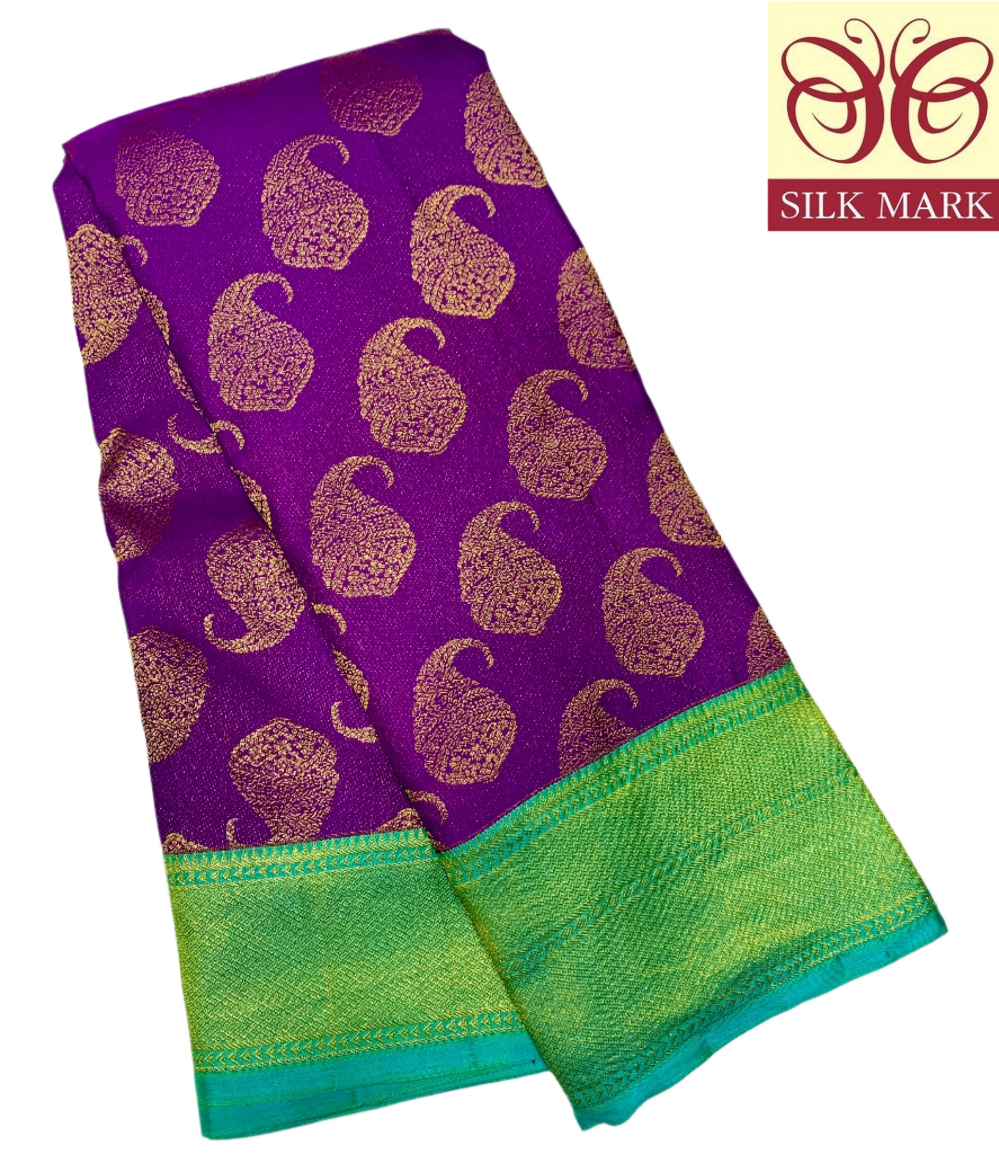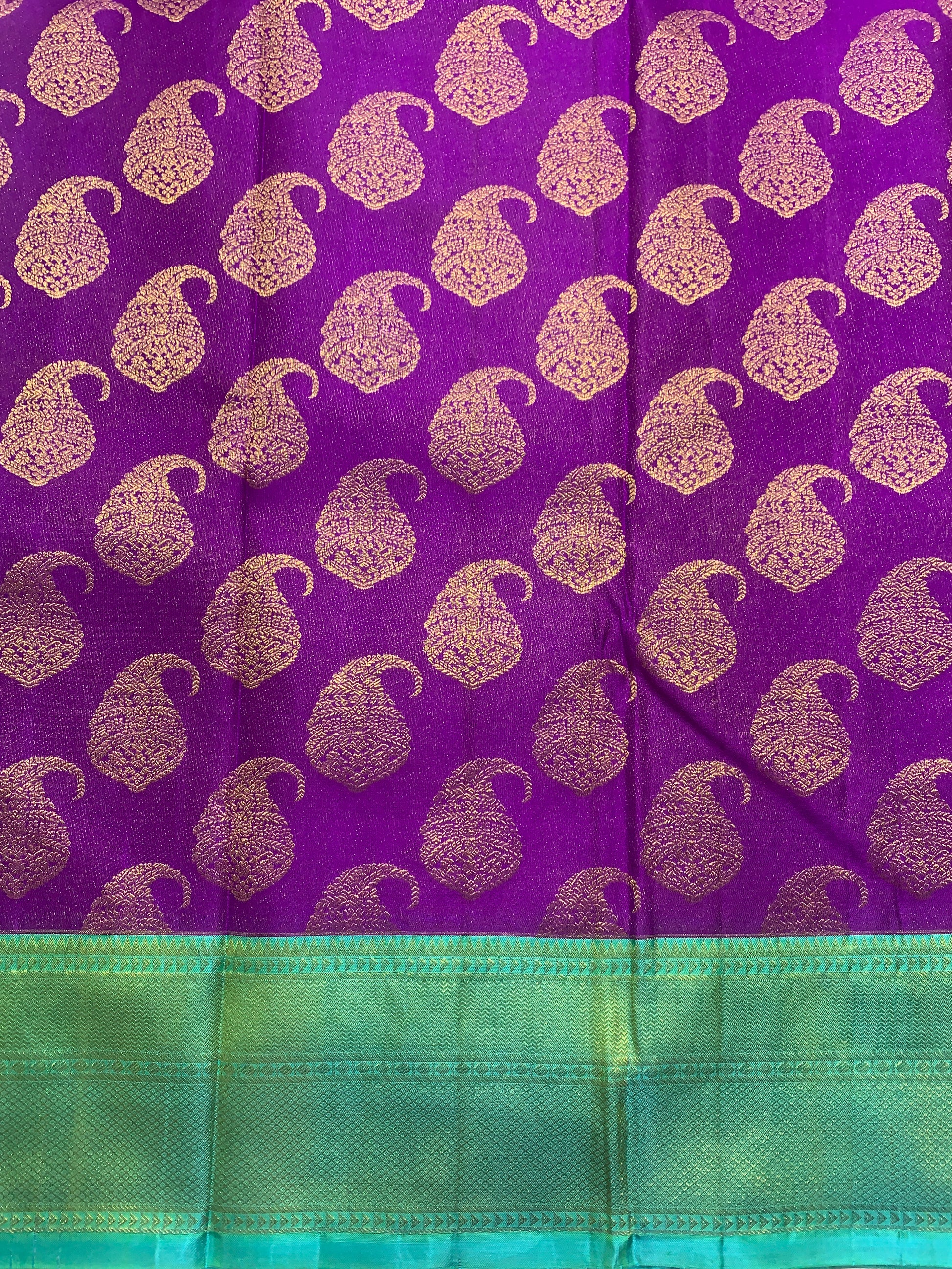 Pure Kanchipuram Silk Lavender Colour with Sapphire Border.