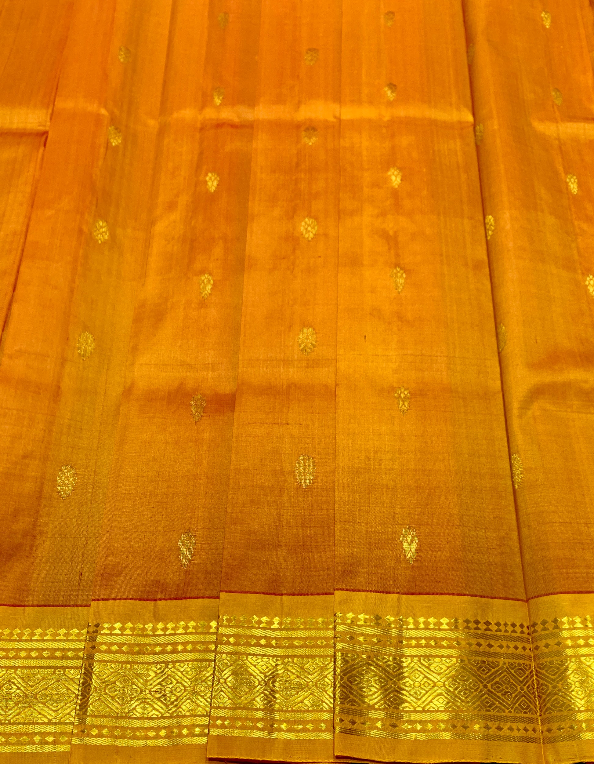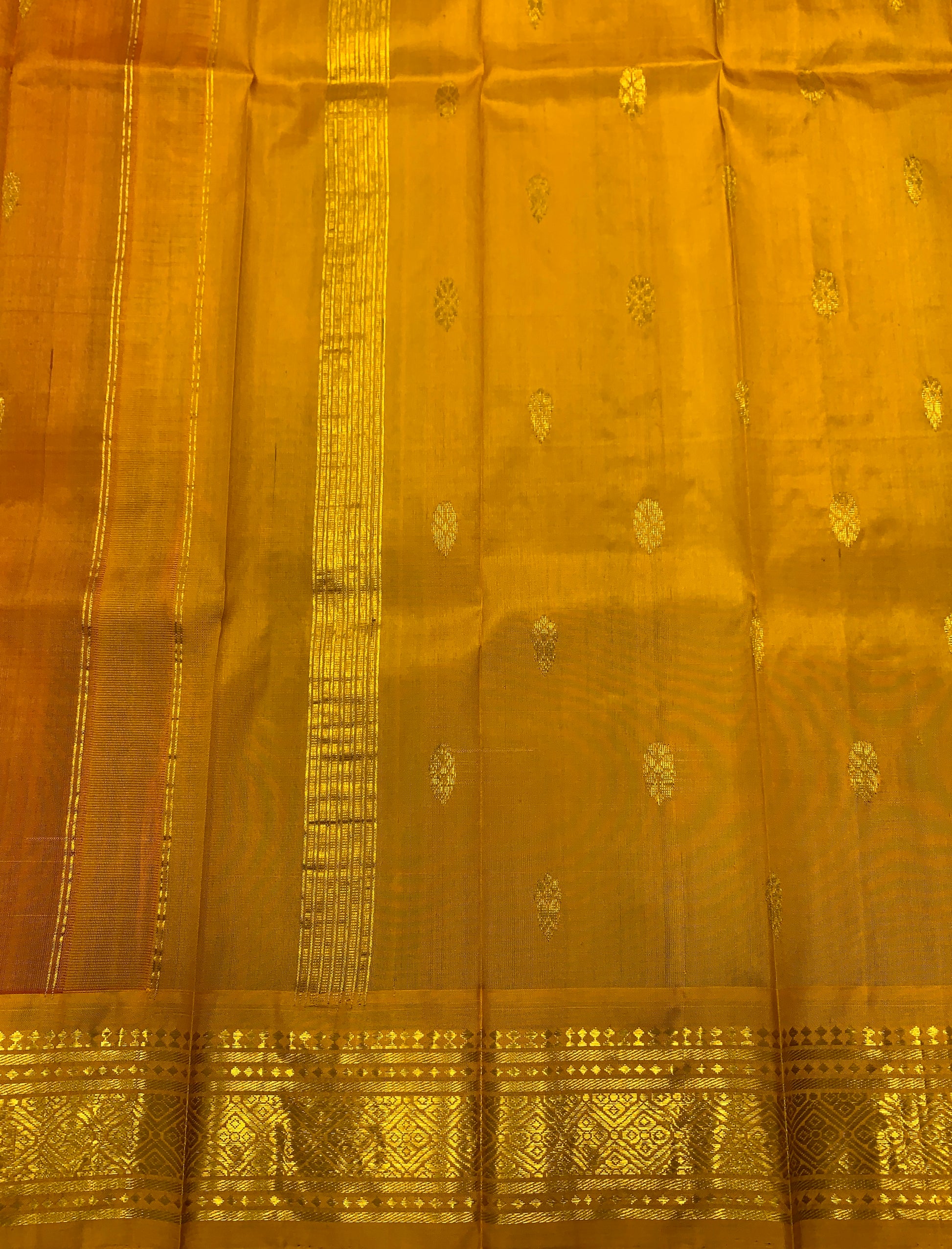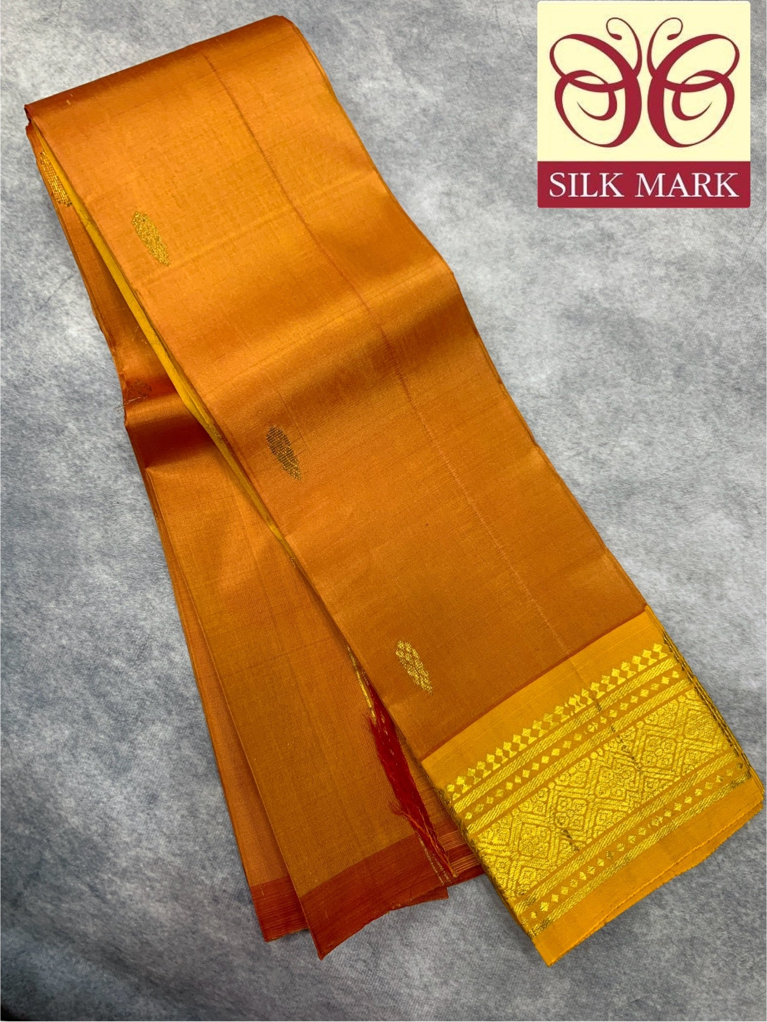 Pure Kanchipuram Silk Saree Mustard Colour Shade with Golden Zari Border.