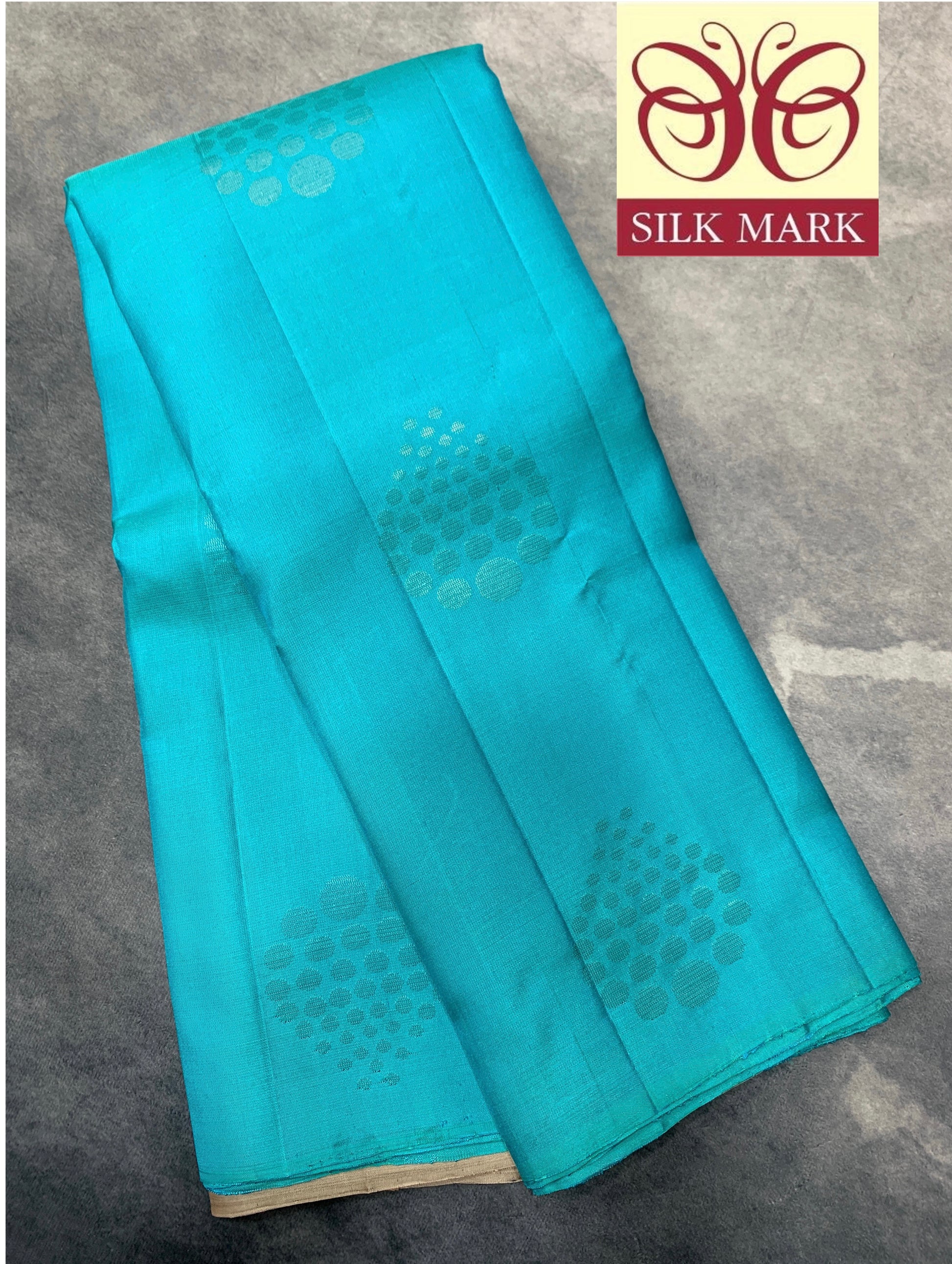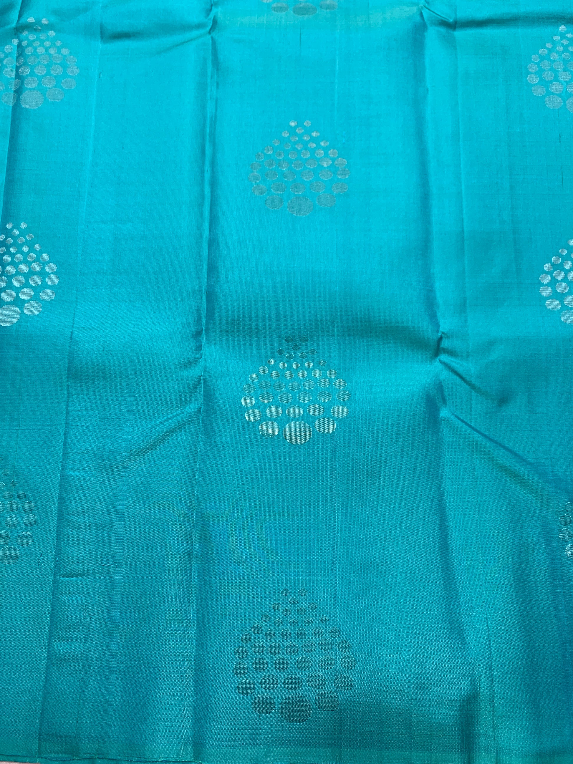 Pure Kanchipuram Silk Saree Sapphire Colour with Border Less.