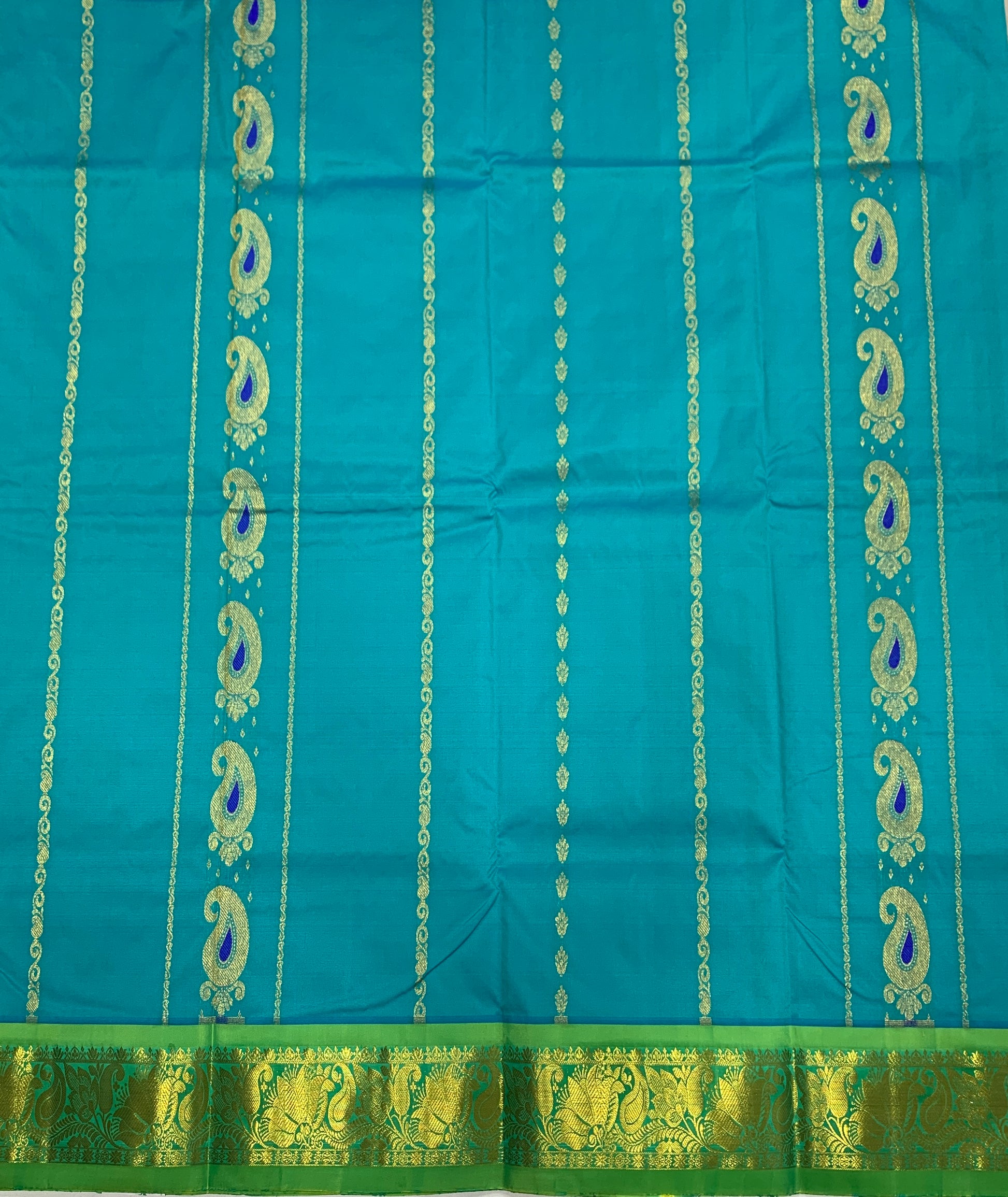 Rama Blue shade Semi silk Kids Pattu Pavadai with Contrast border for age 5 to 10