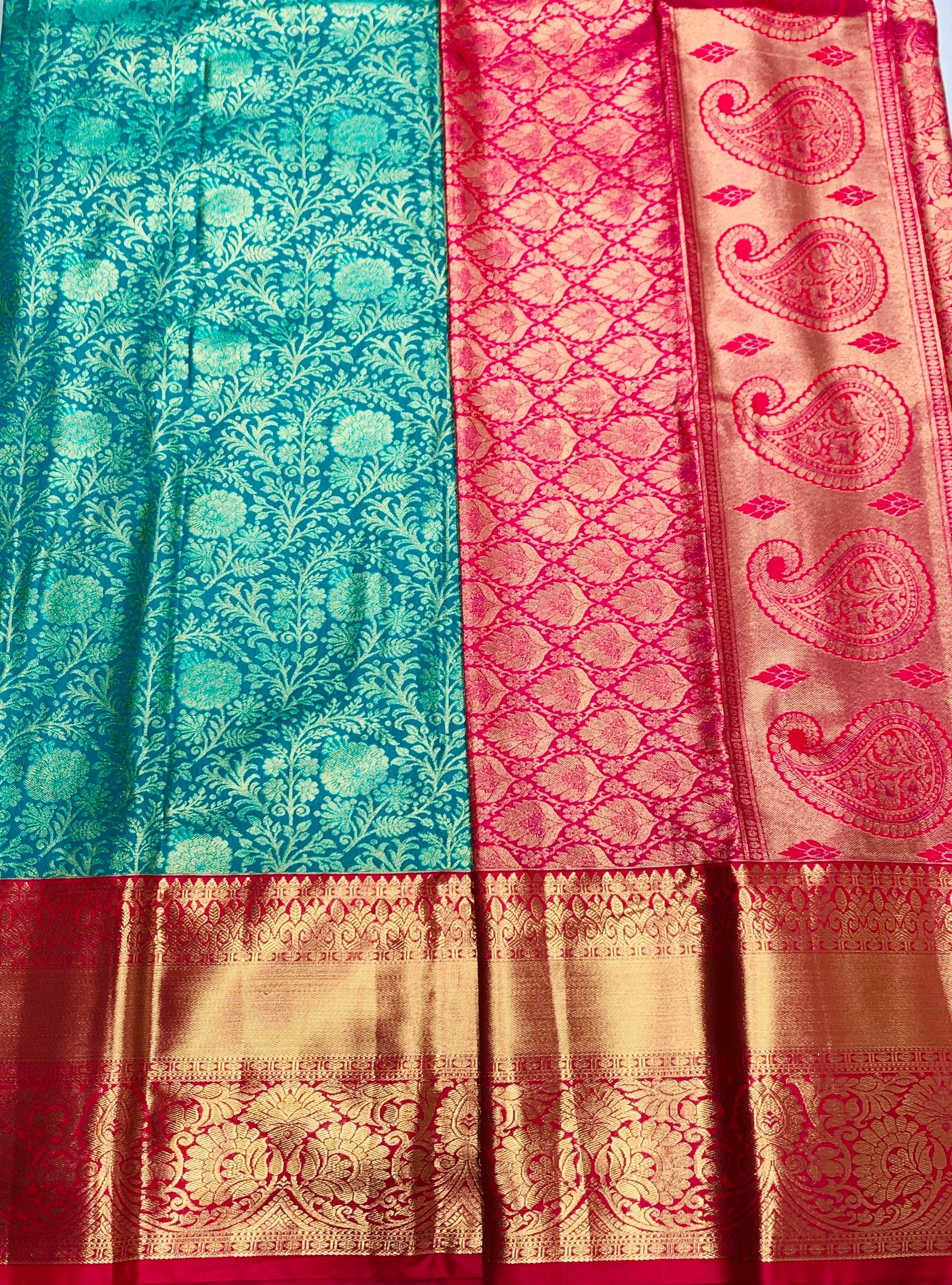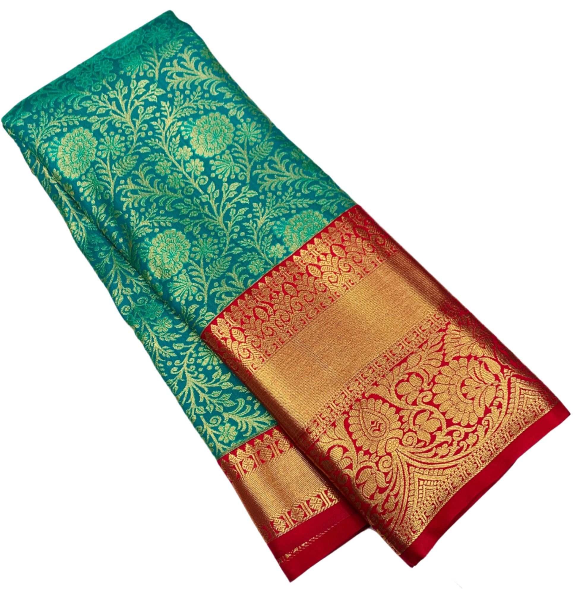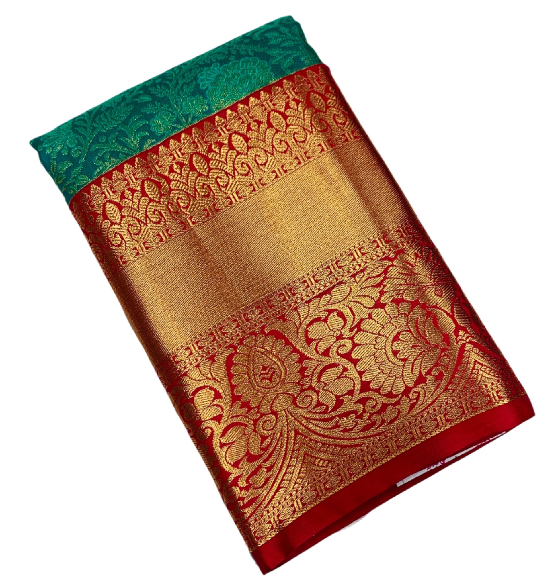 Rama Green Colour Semi Silk Saree with Big Red Border