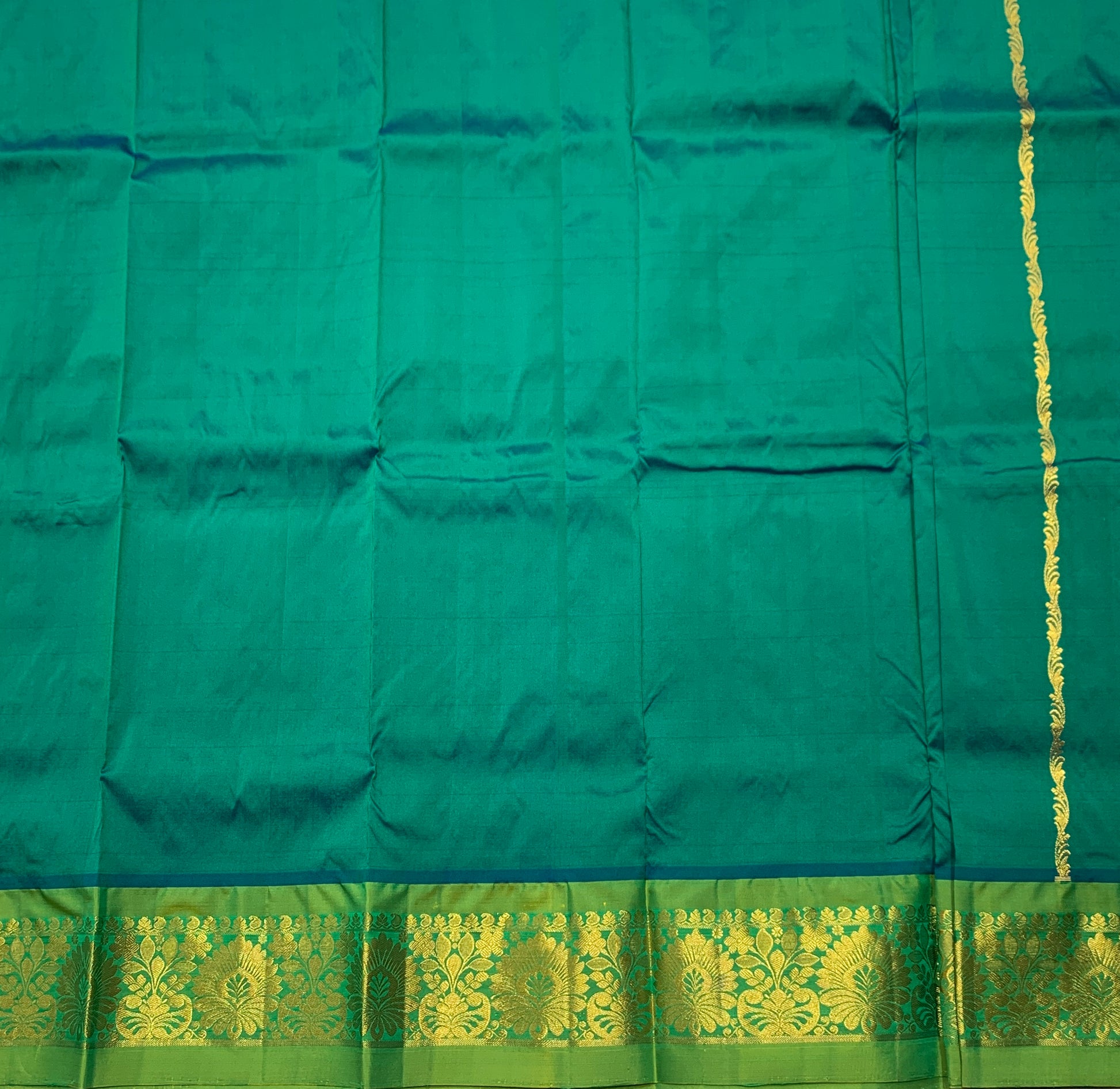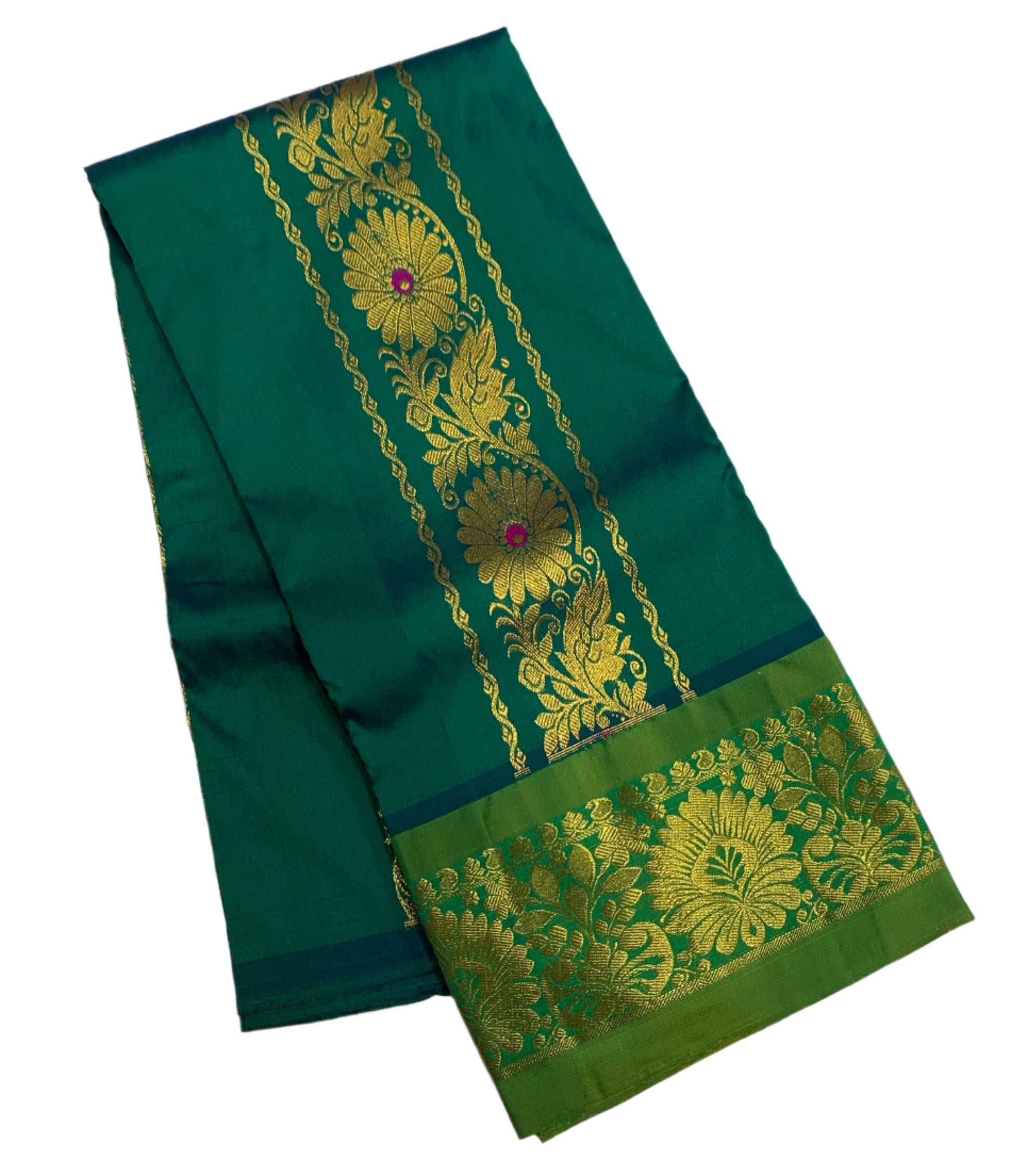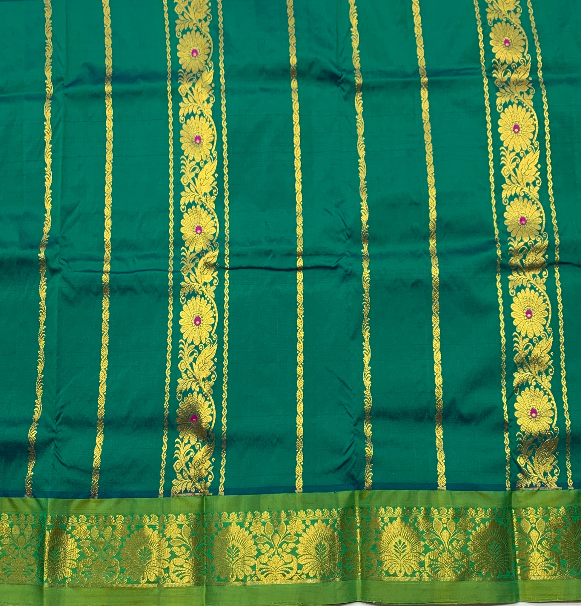 Rama Green Shade with Contrast border Semi silk unstitched Pattu Pavadai material for kids Age 2 to 5