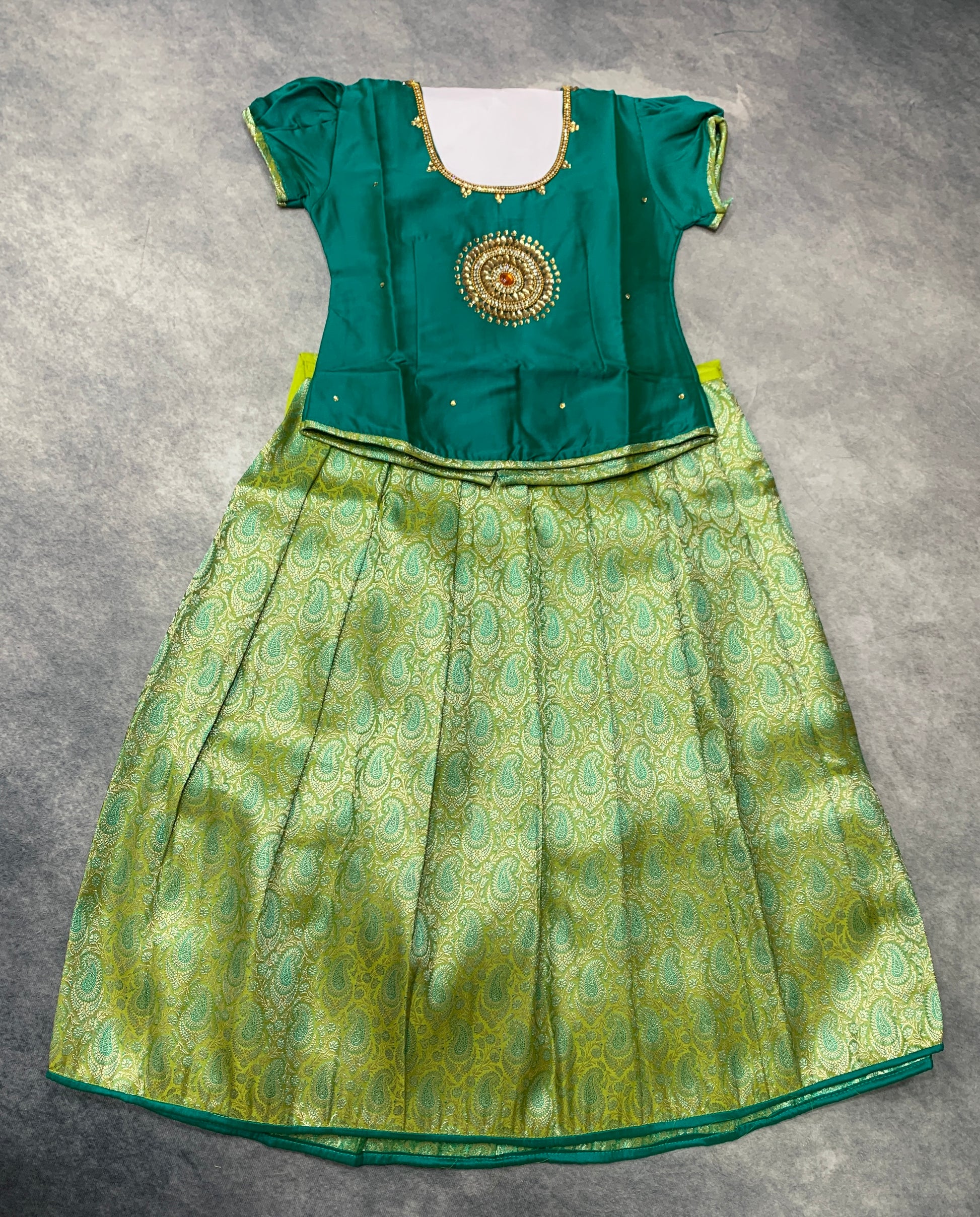 Ready To Wear Apple Green Pavadai with Contrast Peacock Green Blouse