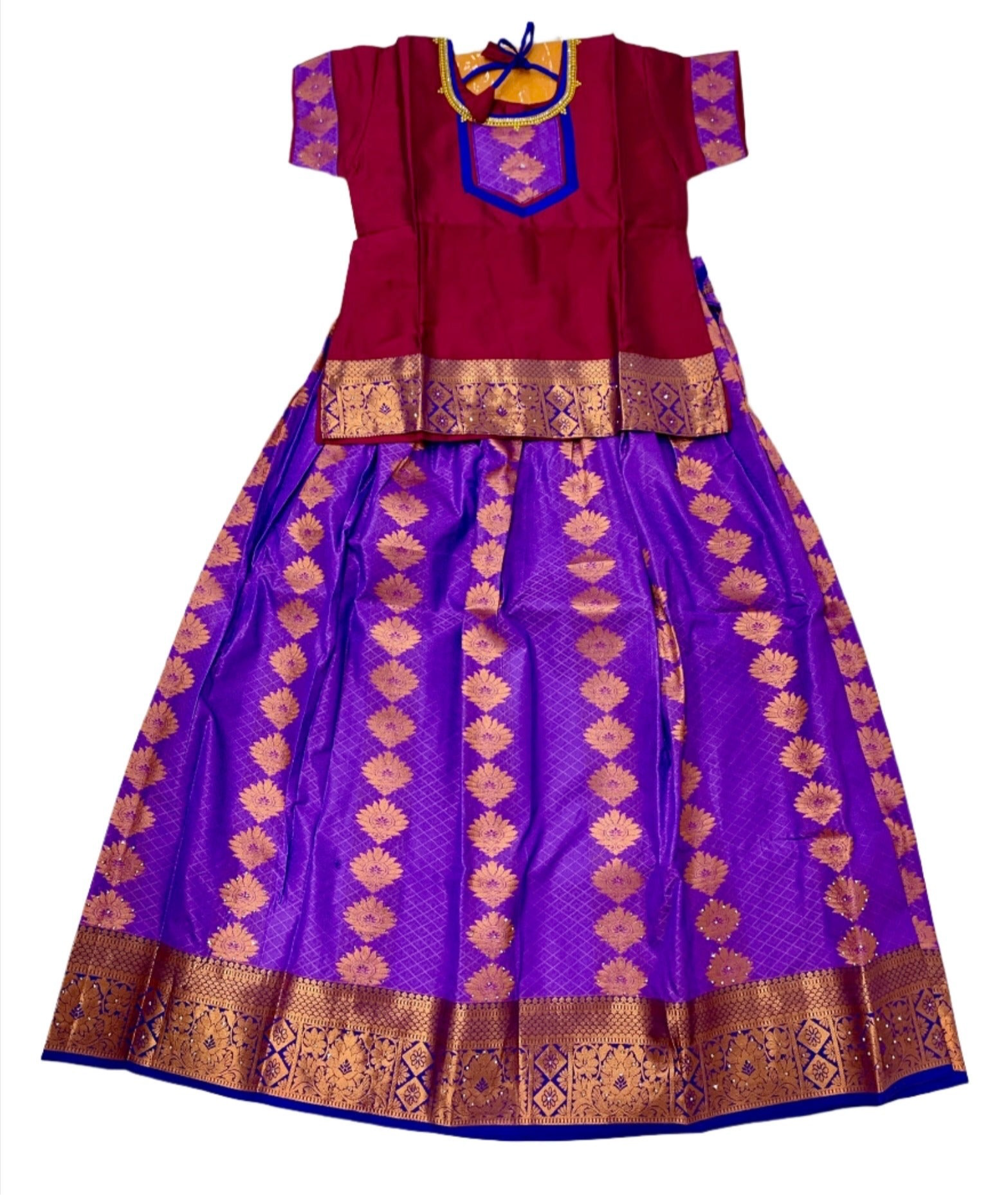Ready To Wear Lavender Pavadai with contrast Maroon Blouse.