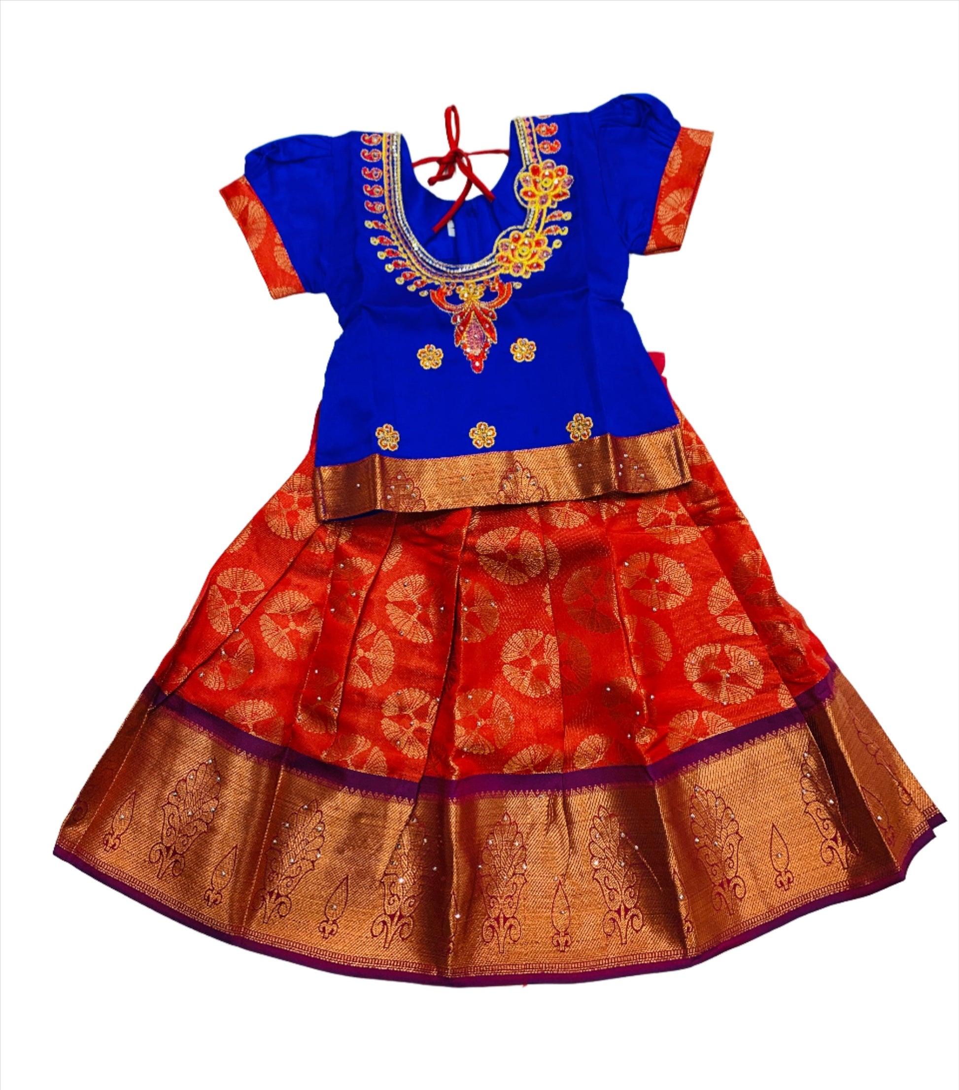 Ready To Wear Maroon Pavadai with contrast Blue Blouse