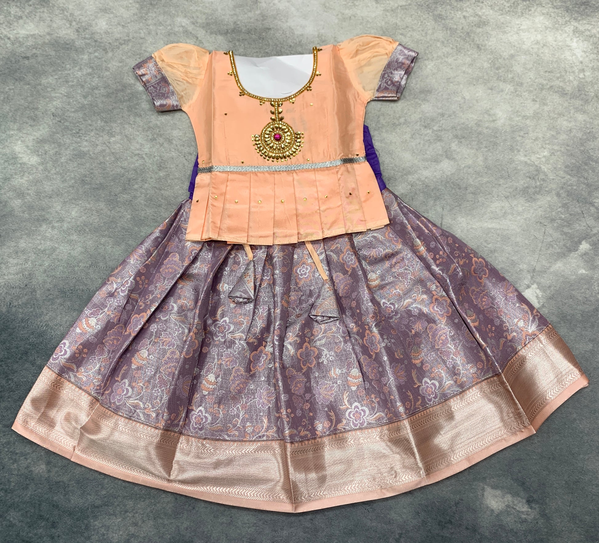 Ready To Wear Lavender Pavadai with Contrast Peach Blouse.