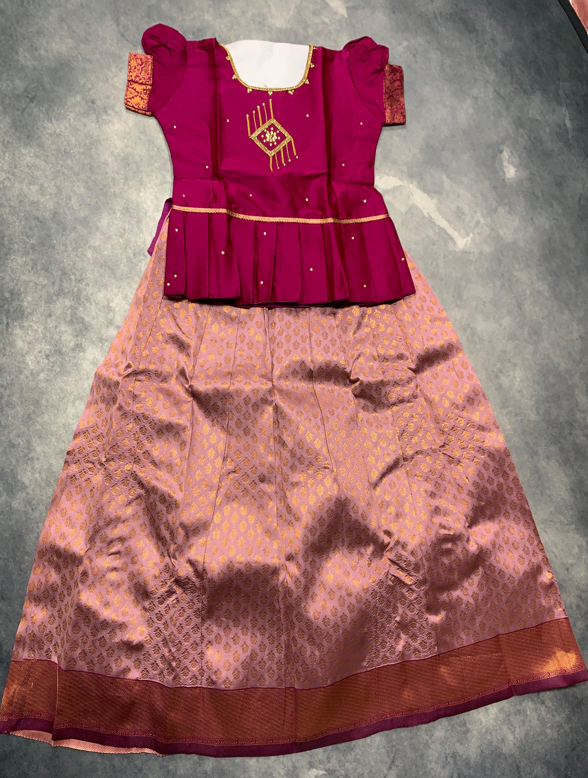 Ready To Wear Onion Pink Pavadai with Contrast Magenta Blouse