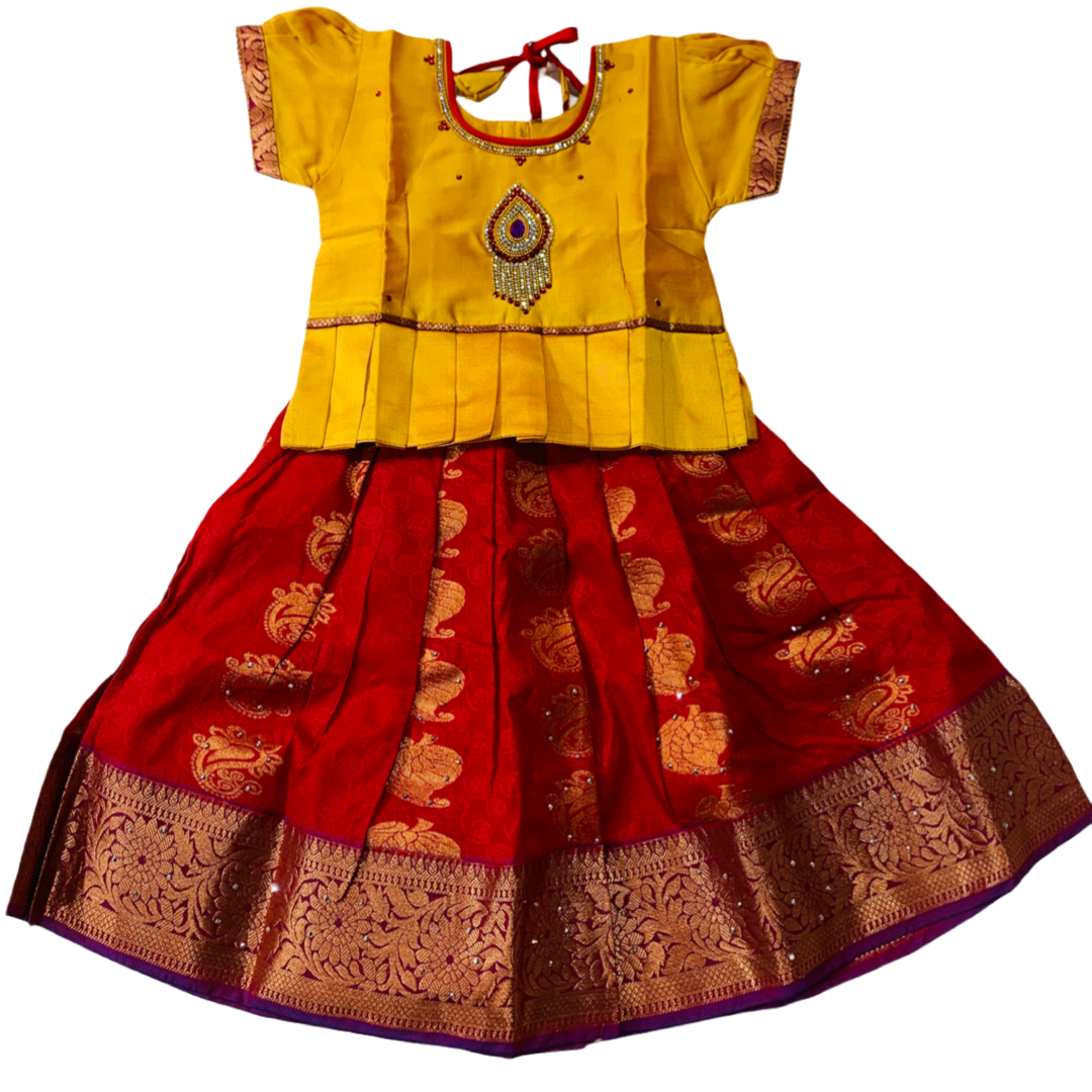 Ready To Wear Maroon Pavadai with contrast Golden Blouse
