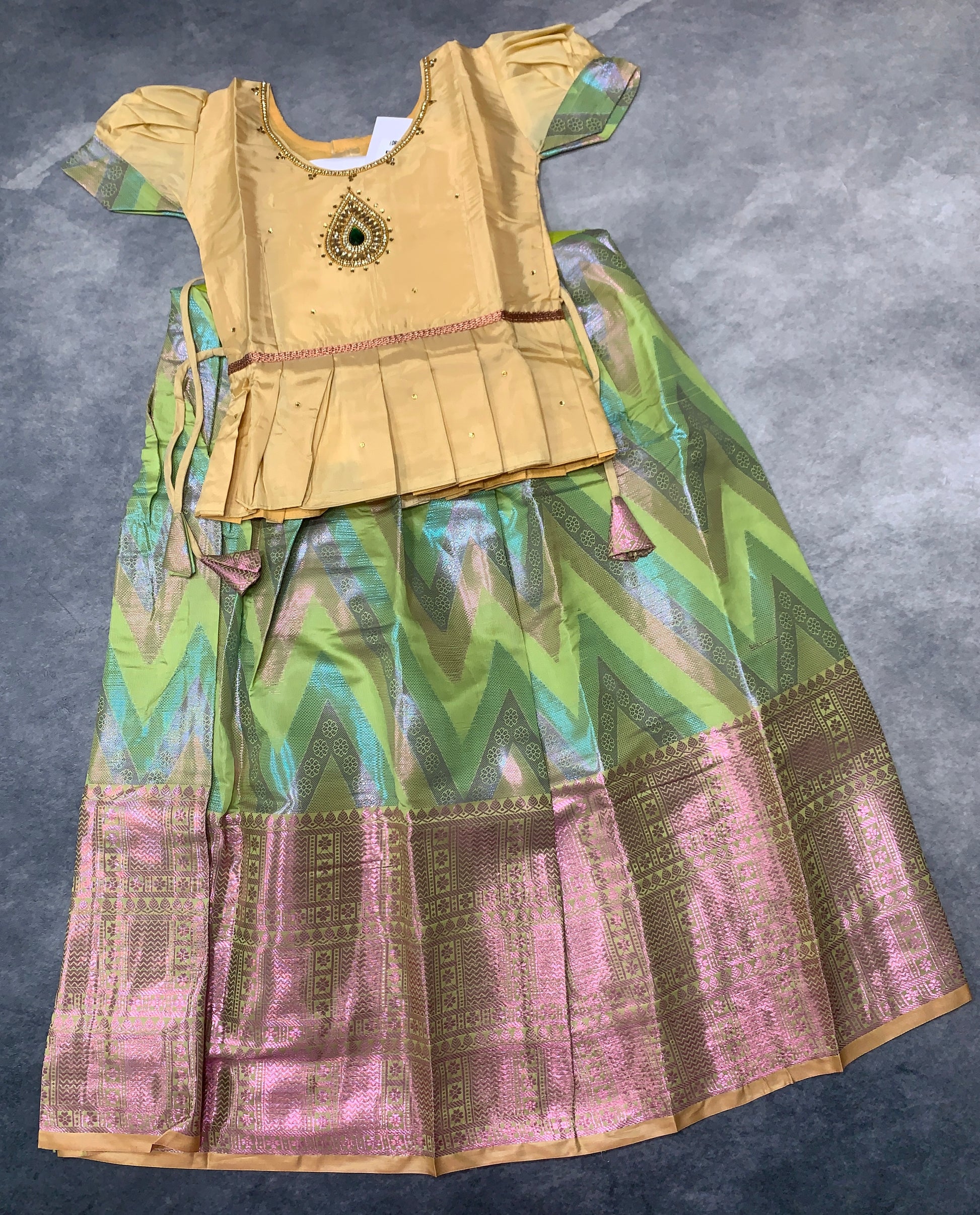 Ready To Wear Pista Green Pavadai with Contrast Sandal Blouse
