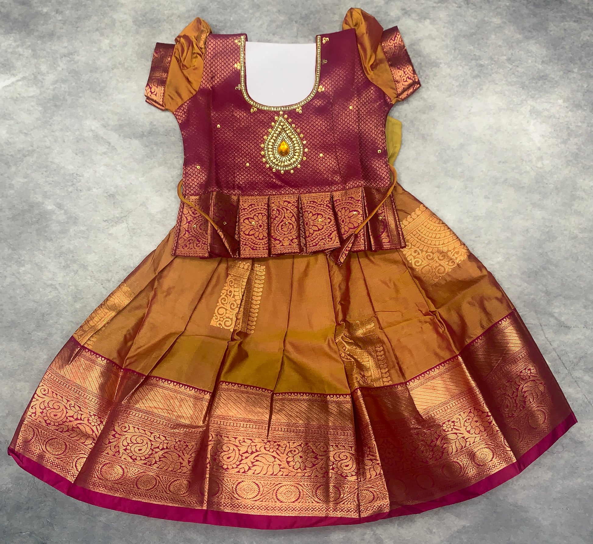 Ready To Wear Russet Colour Pavadai with Contrast Pink Blouse for 6 month Baby.