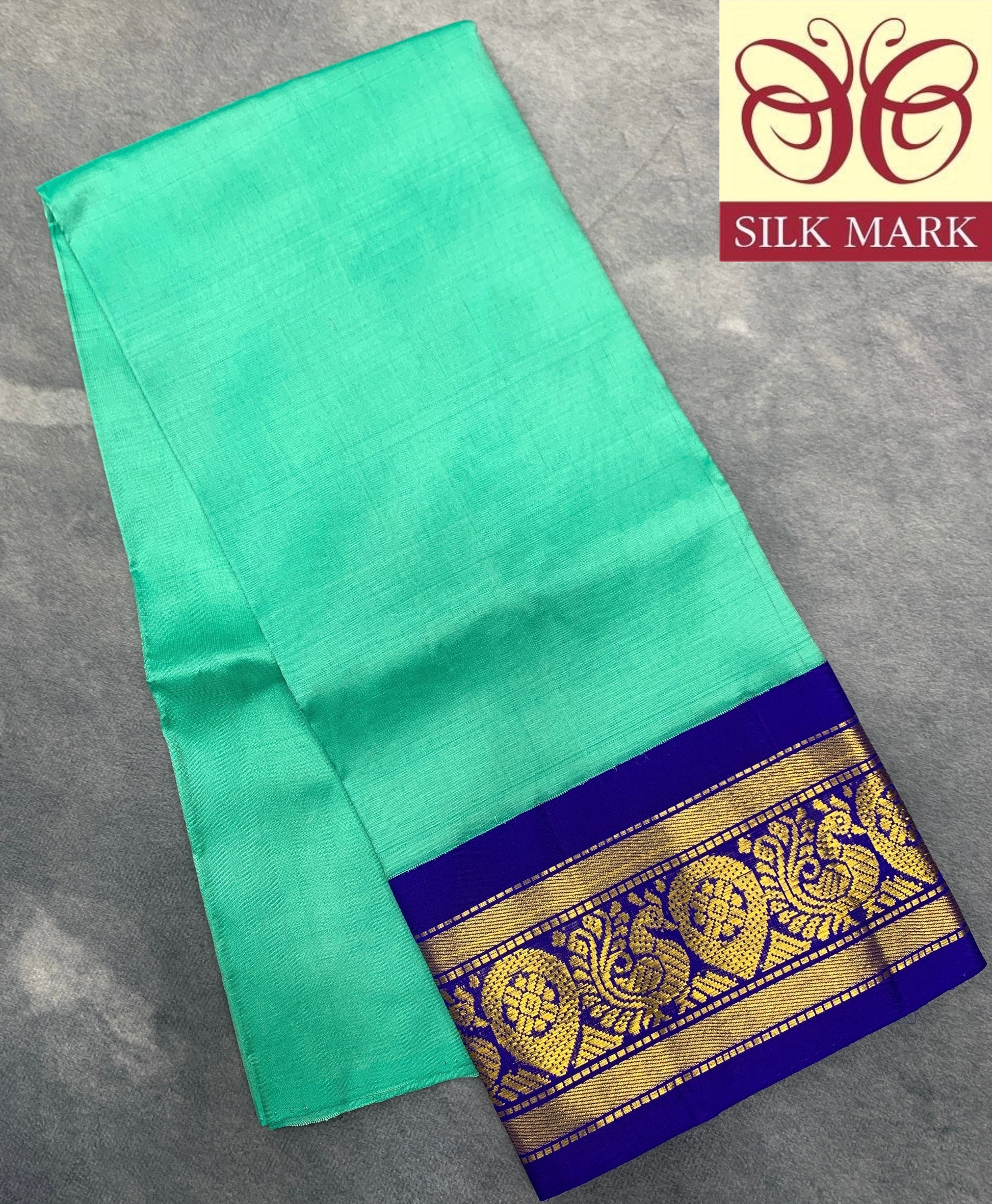 Sapphire Shade Pure Kanchipuram Kids Pattu Pavadai with Contrast Border for age 2 to 5