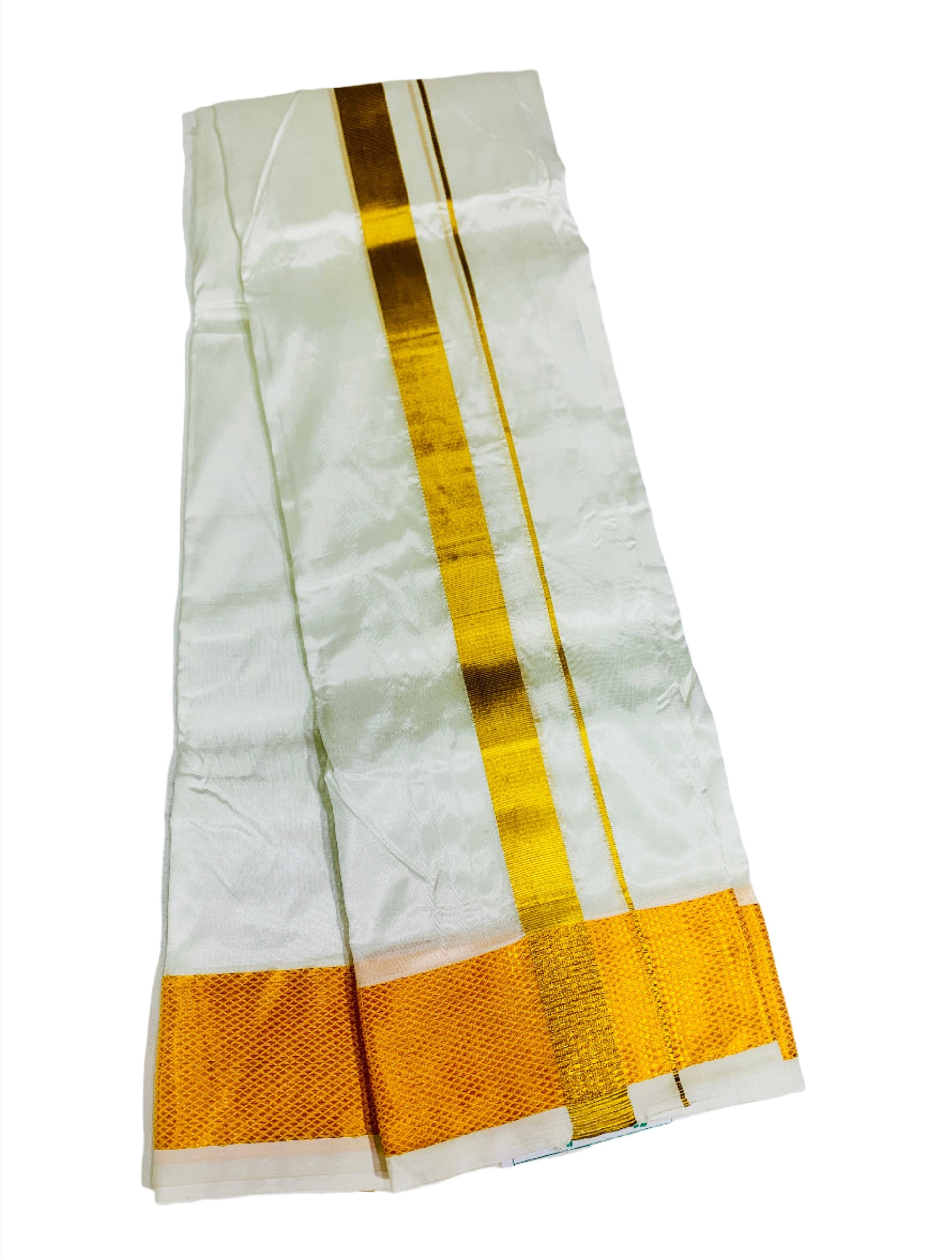 Semi Silk Dhoti 8 Mulam White Colour Medium Border