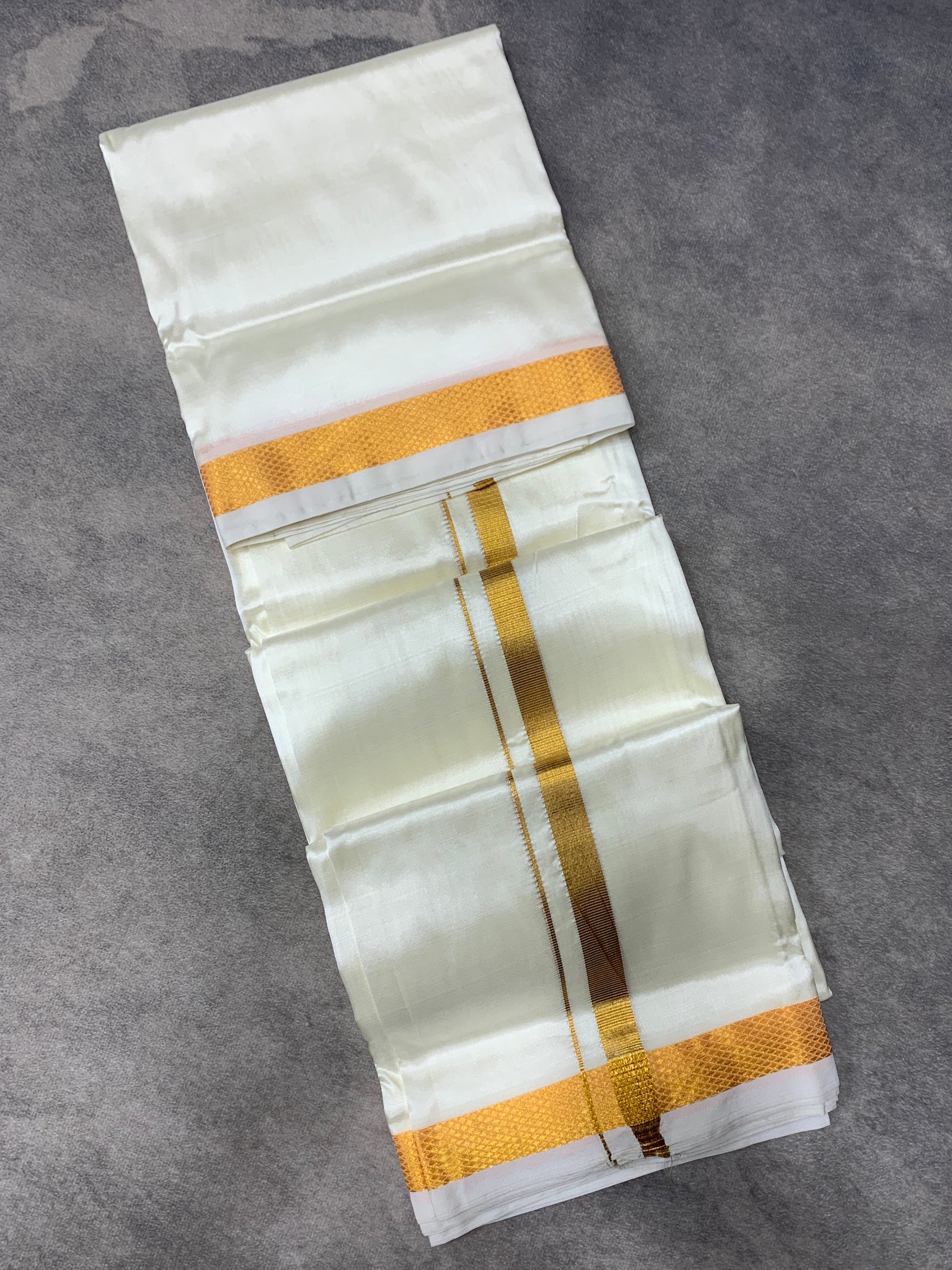 Semi Silk 8 Mulam Dhoti Cream Colour with Medium Border