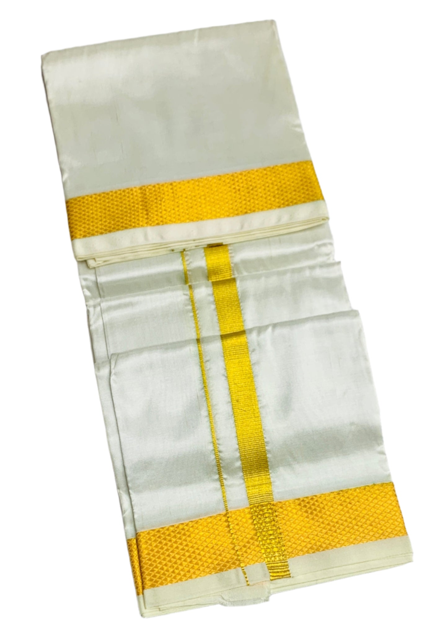 Semi Silk Pooja Towel White Colour with Zari Border