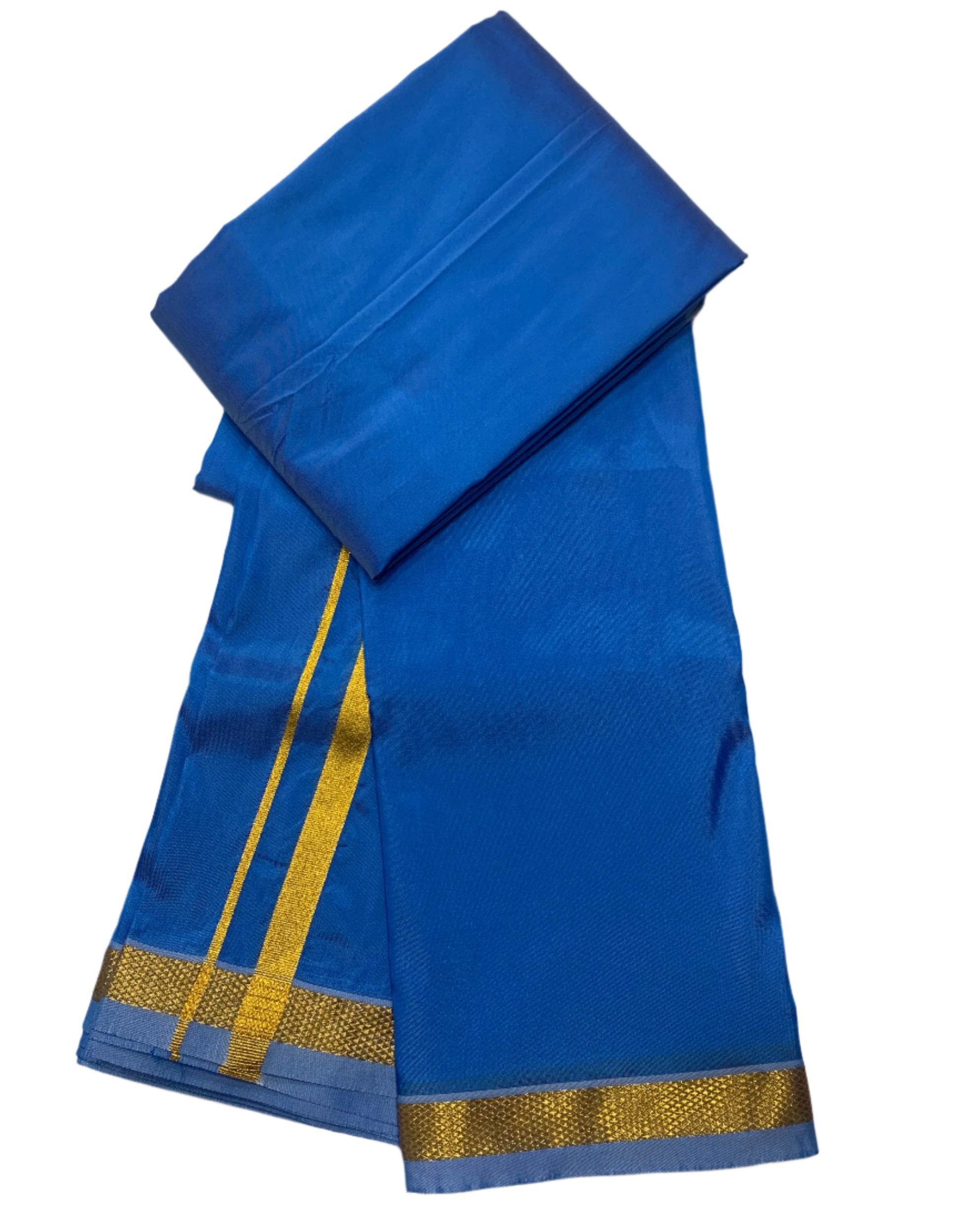 Sky Blue Silk Dhothi and Shirt Material Combo