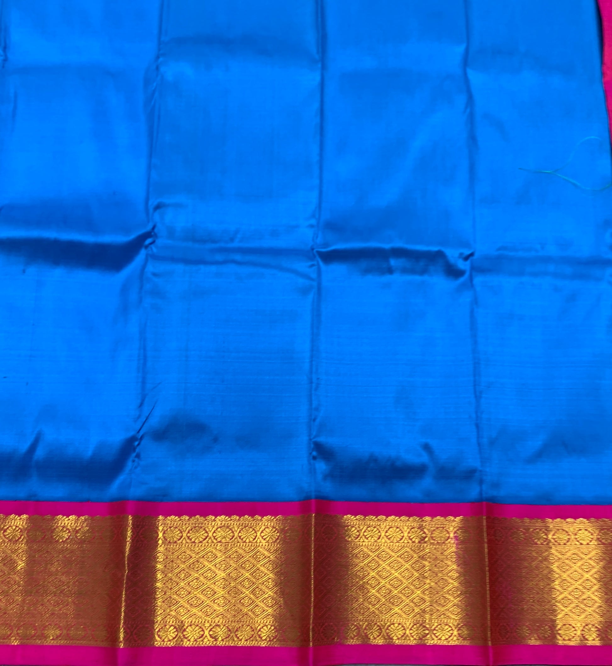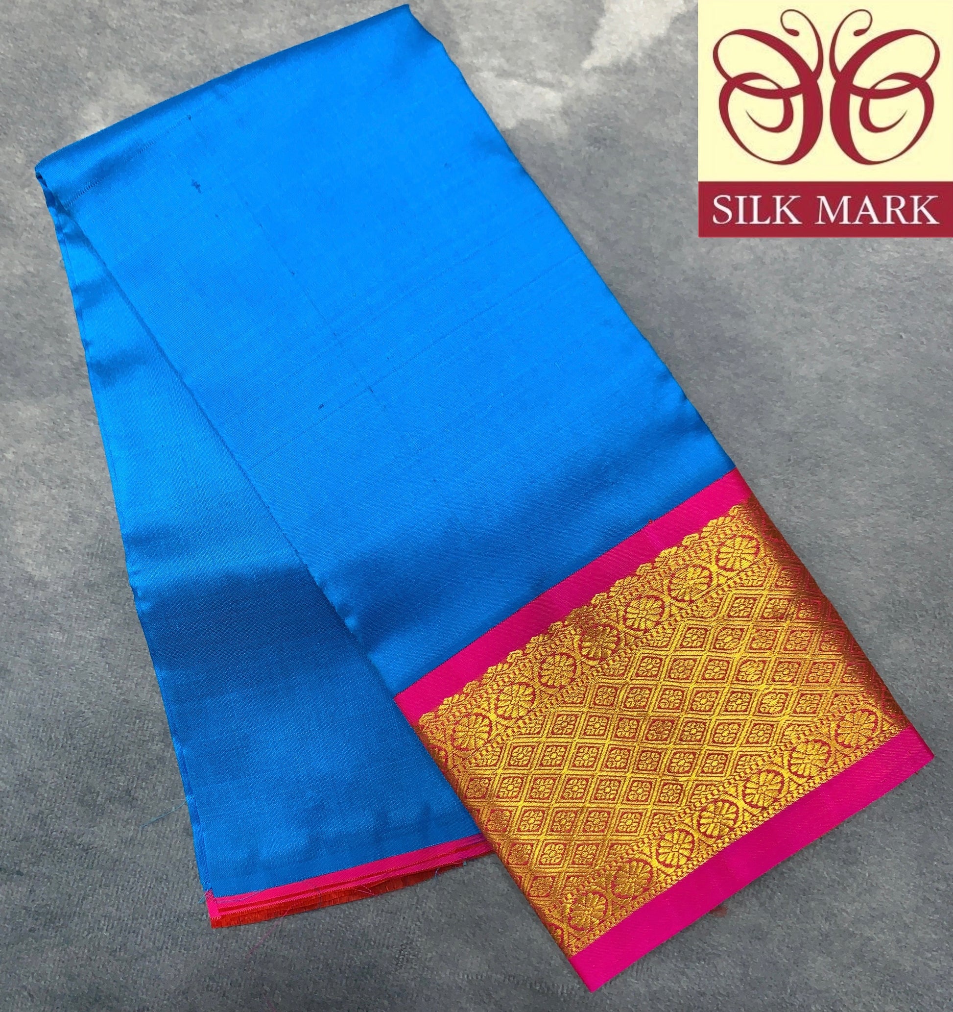 Sky Blue Shade with Pink Contrast Border Pure Kanchipuram Pattu Pavadai Material for Kids Age Newborn to 2 Years