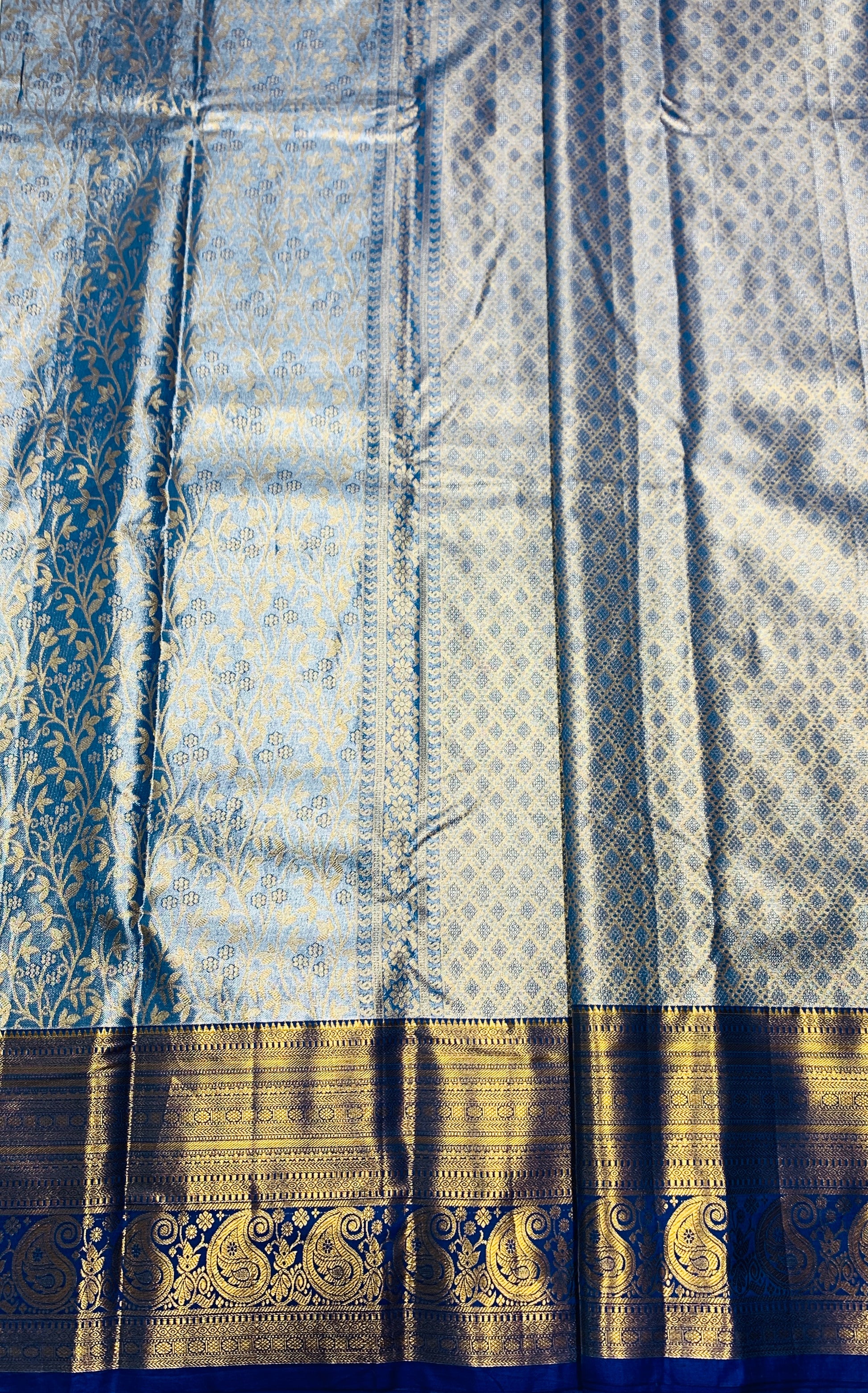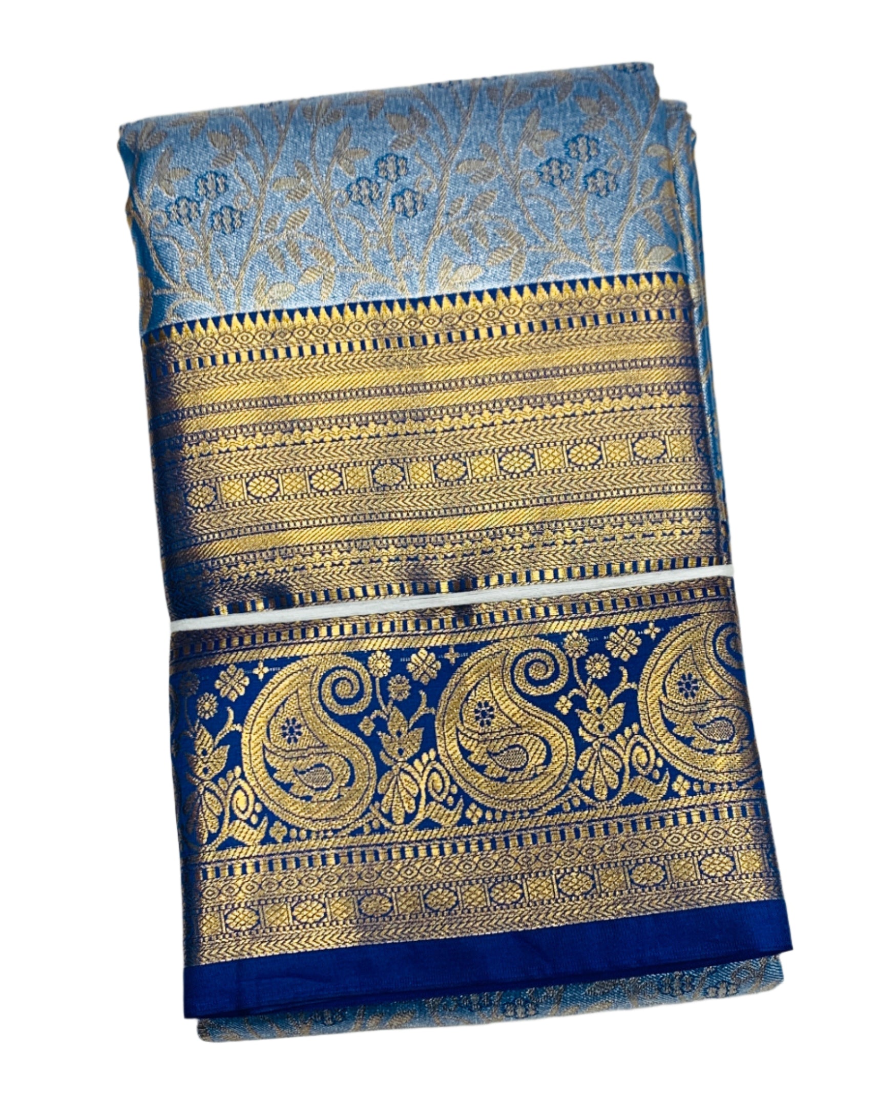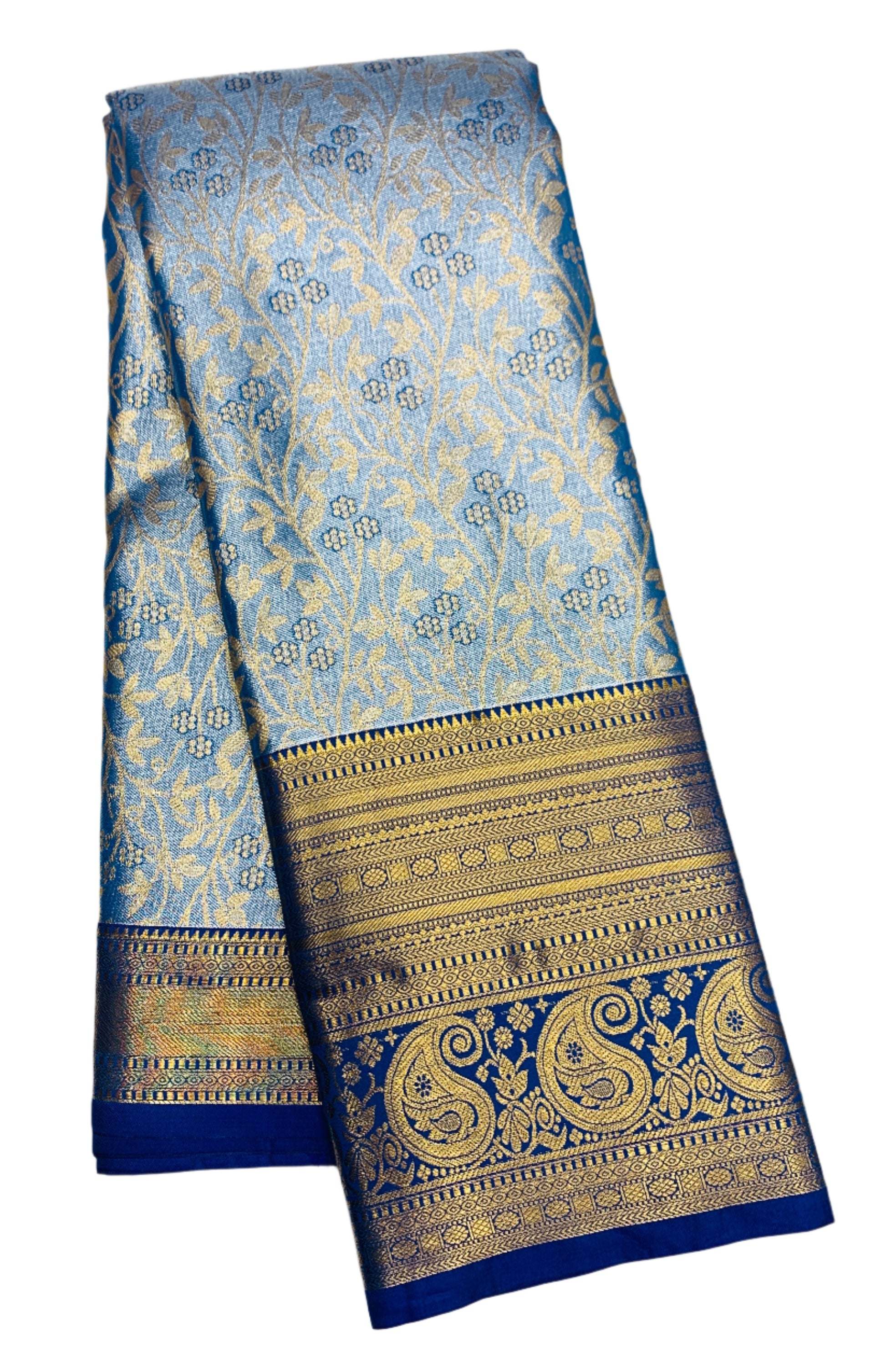 Sky Blue Shade Soft Kanchi Tissue Pattu Saree with Blue border.