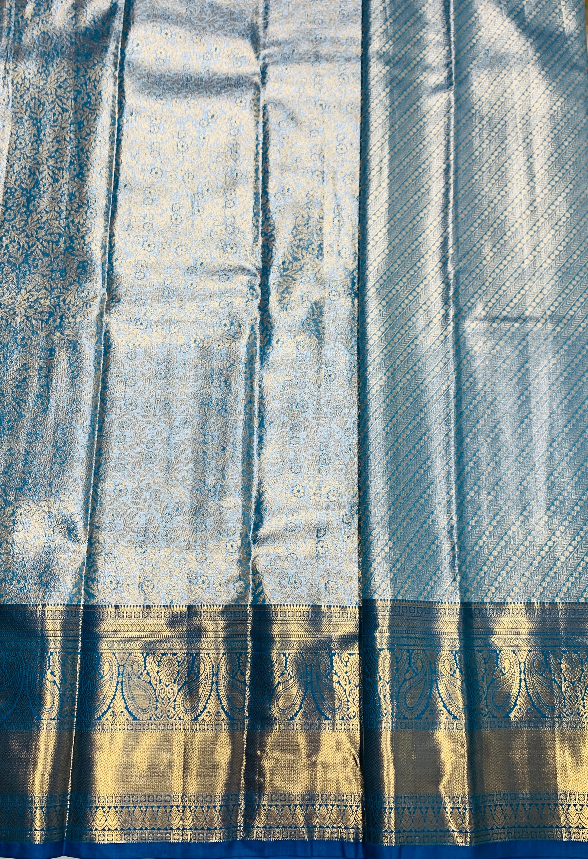 Sky Blue shade Soft Kanchi Tissue Pattu Saree with Self border.
