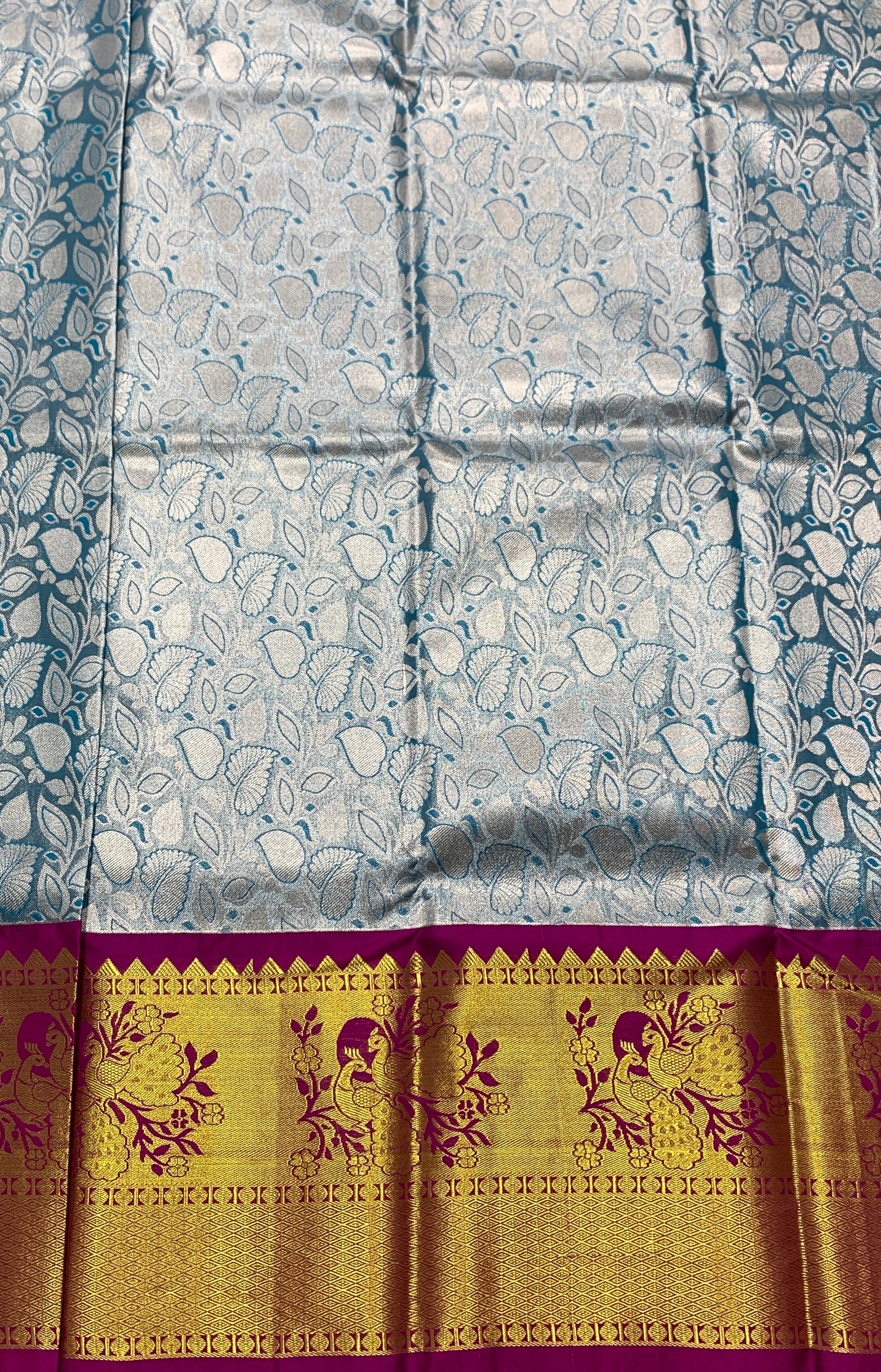 Sky Blue Vegan Silk unstitched Pattu Pavadai material for age Above 10 years.
