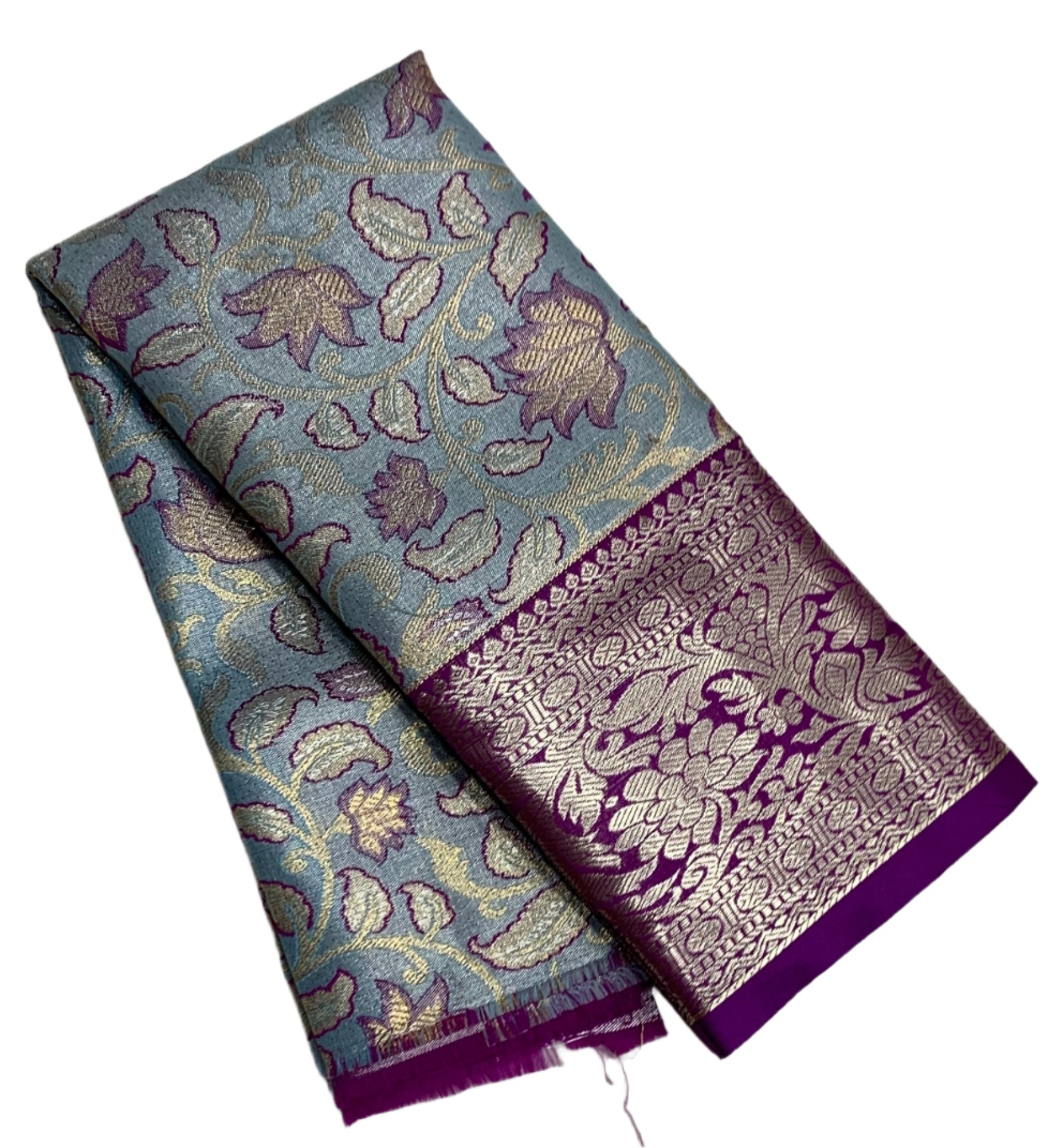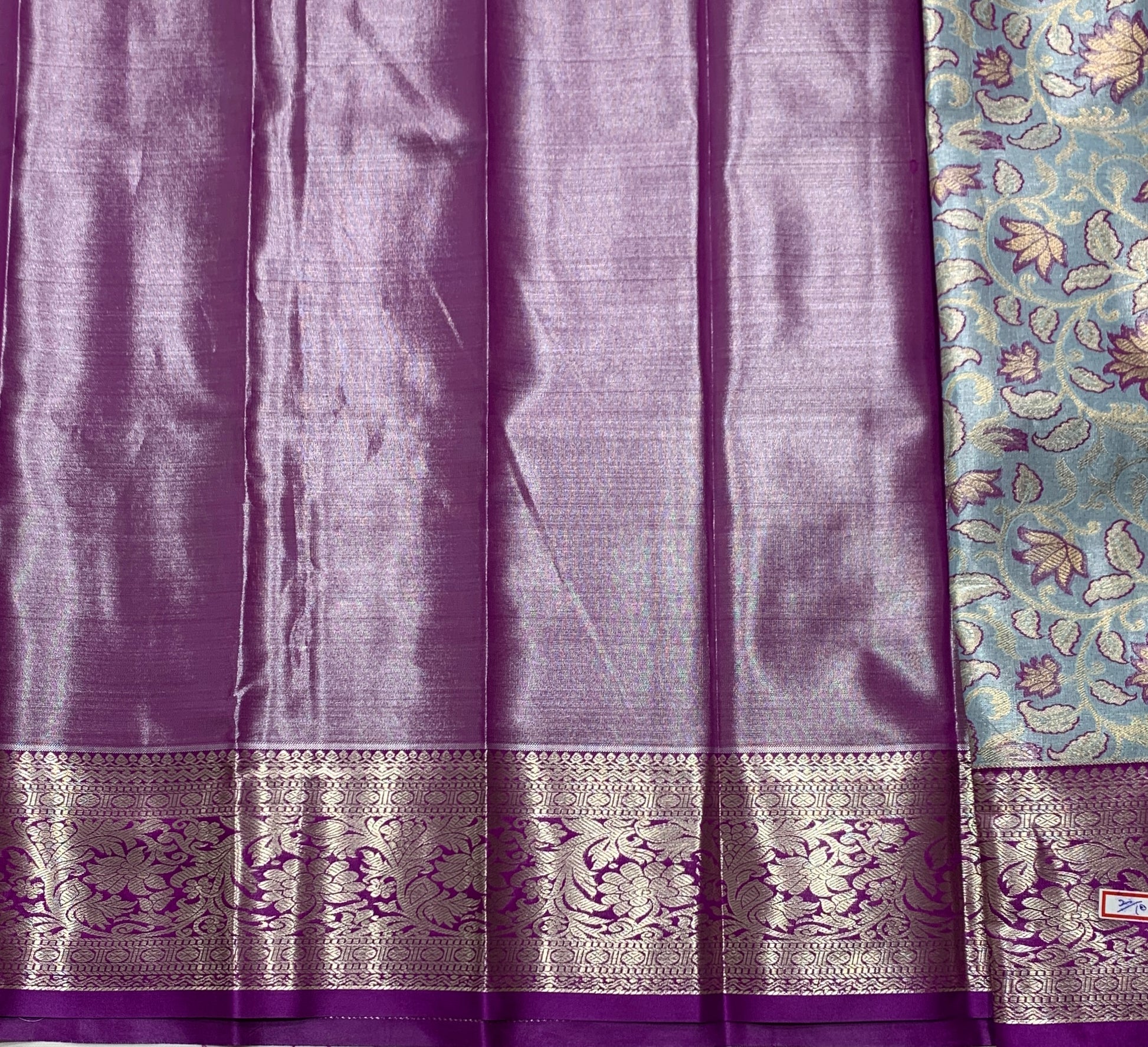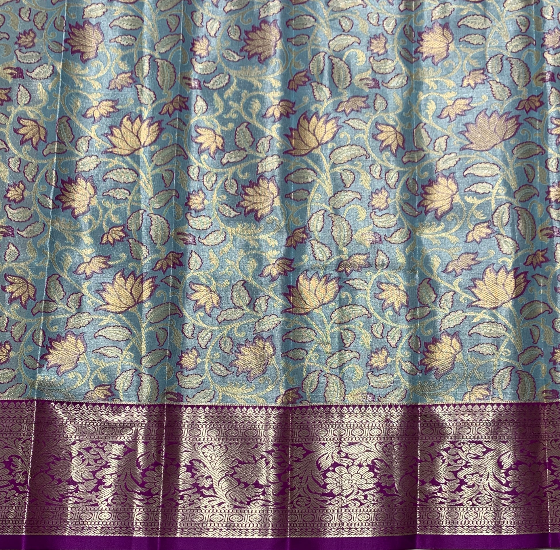 Sky Blue Shade Vegan Silk Kids Pattu Pavadai with Contrast Border unstitched Pattu Pavadai material for kids for age newborn to 2 Years