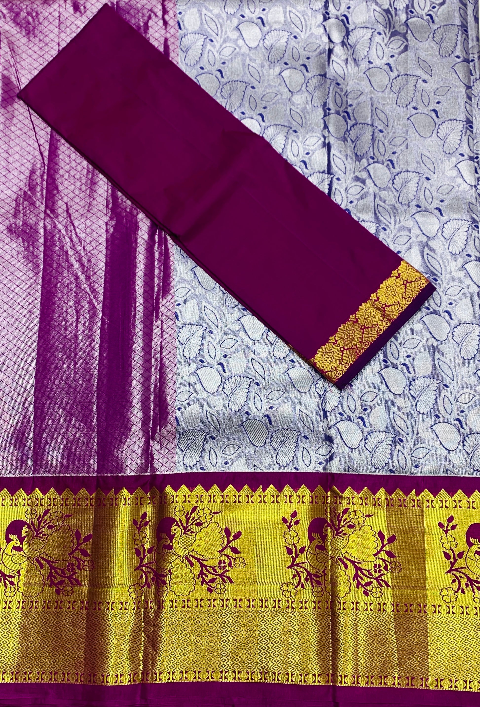 Sliver Shade Silk UnStitched Half Saree Contrast Border for age above 10 years
