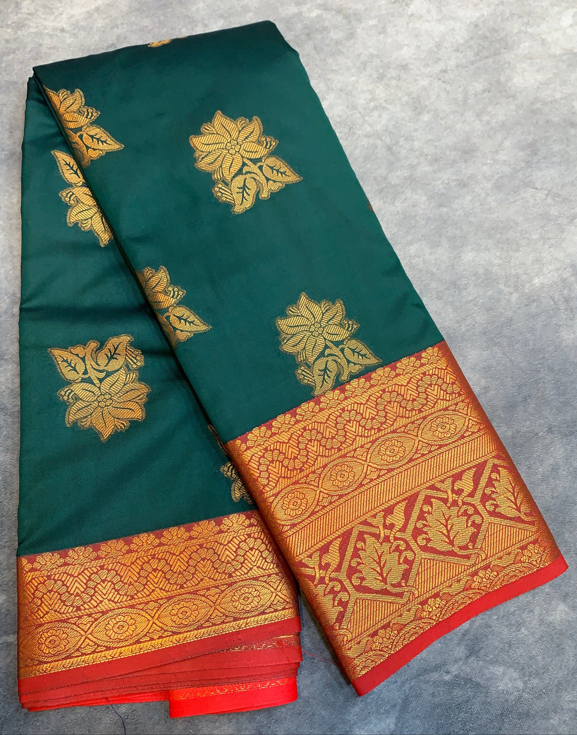 Soft Silk Casual Saree Green Colour with Red and Golden Colour Border