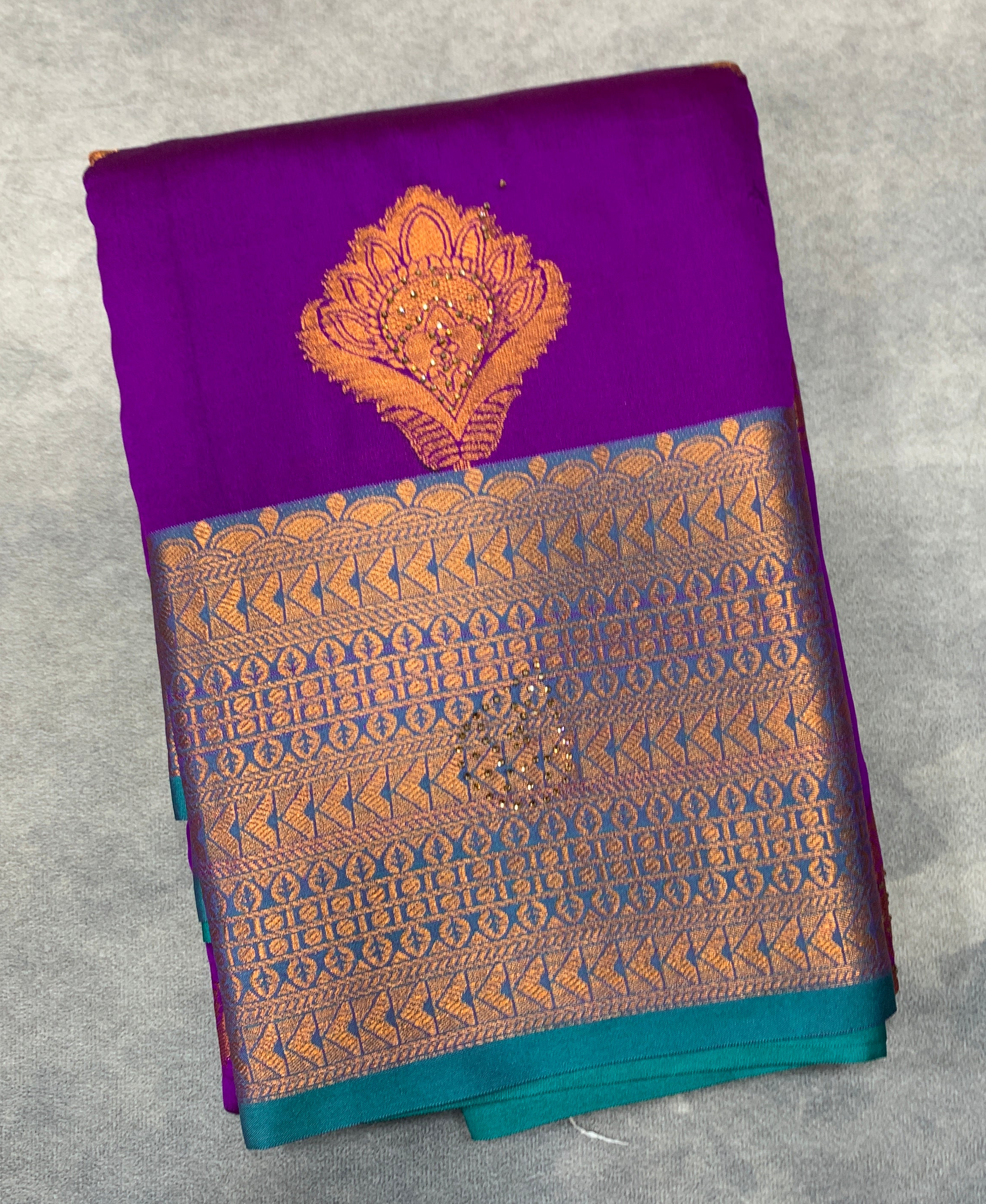 Soft Silk Casual Saree Magenta Colour with Rama Green and Golden Colour Border