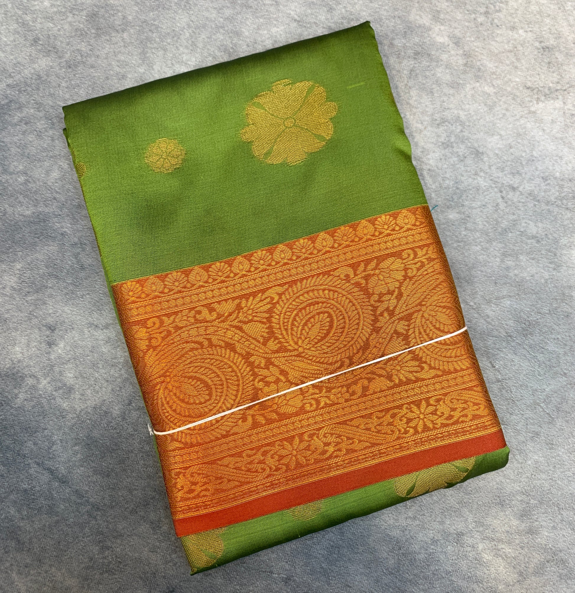 Soft Silk Casual Saree Olive Green Colour with Maroon Border