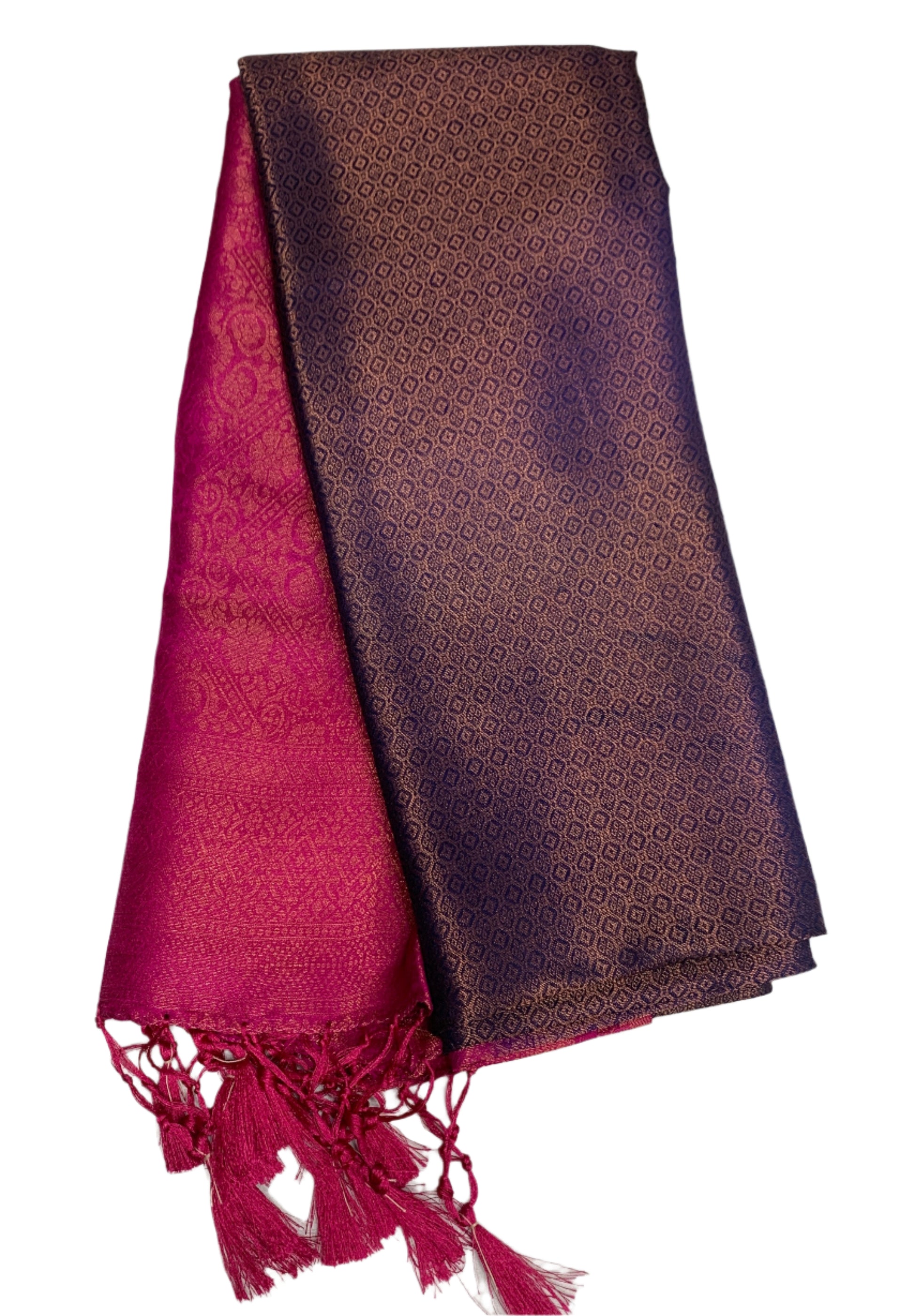 Soft Silk Saree Navy Blue Colour with Pink Pallu.