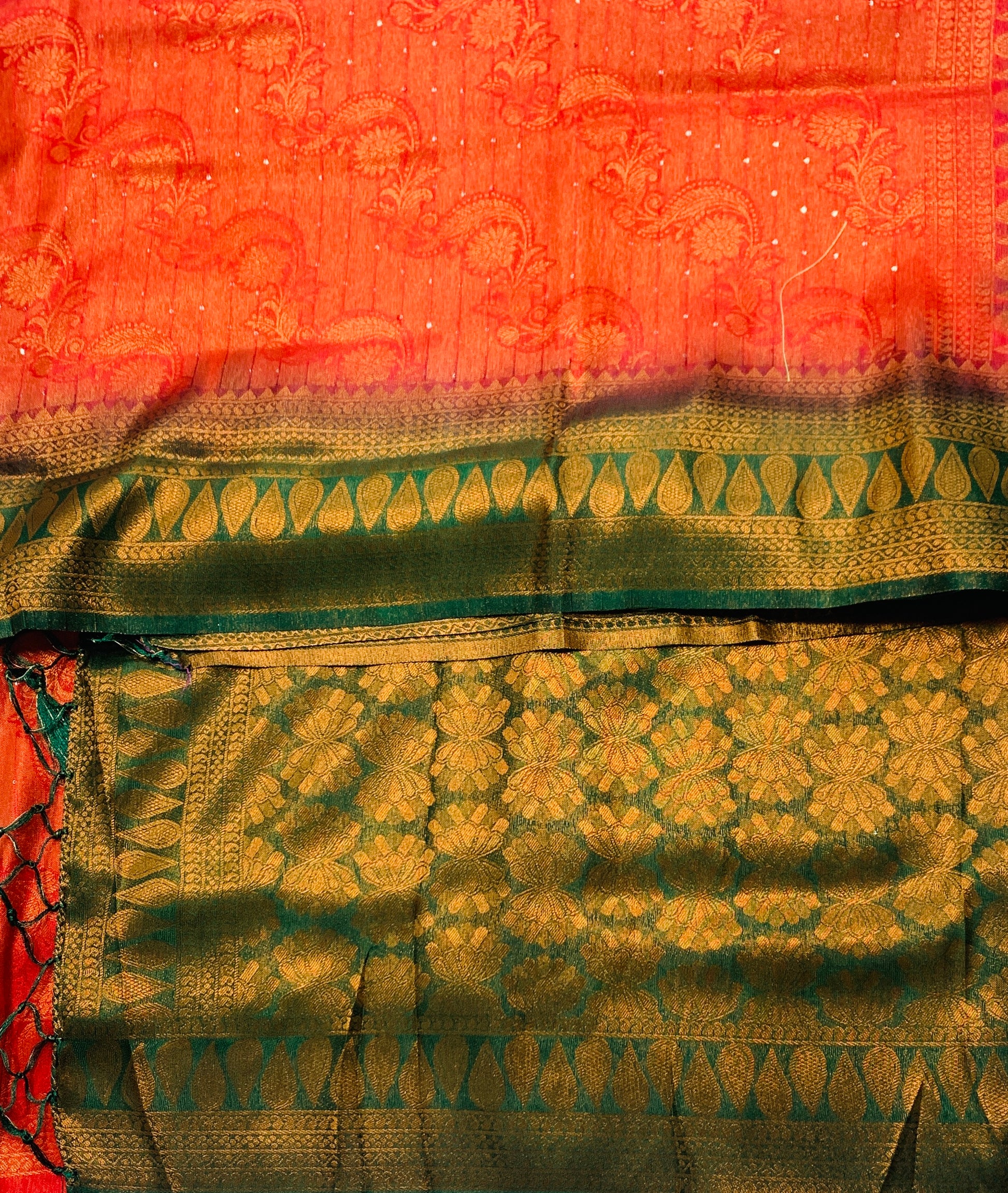 Soft Silk Saree Red Colour with Green pallu. Light weight to Easy wear.