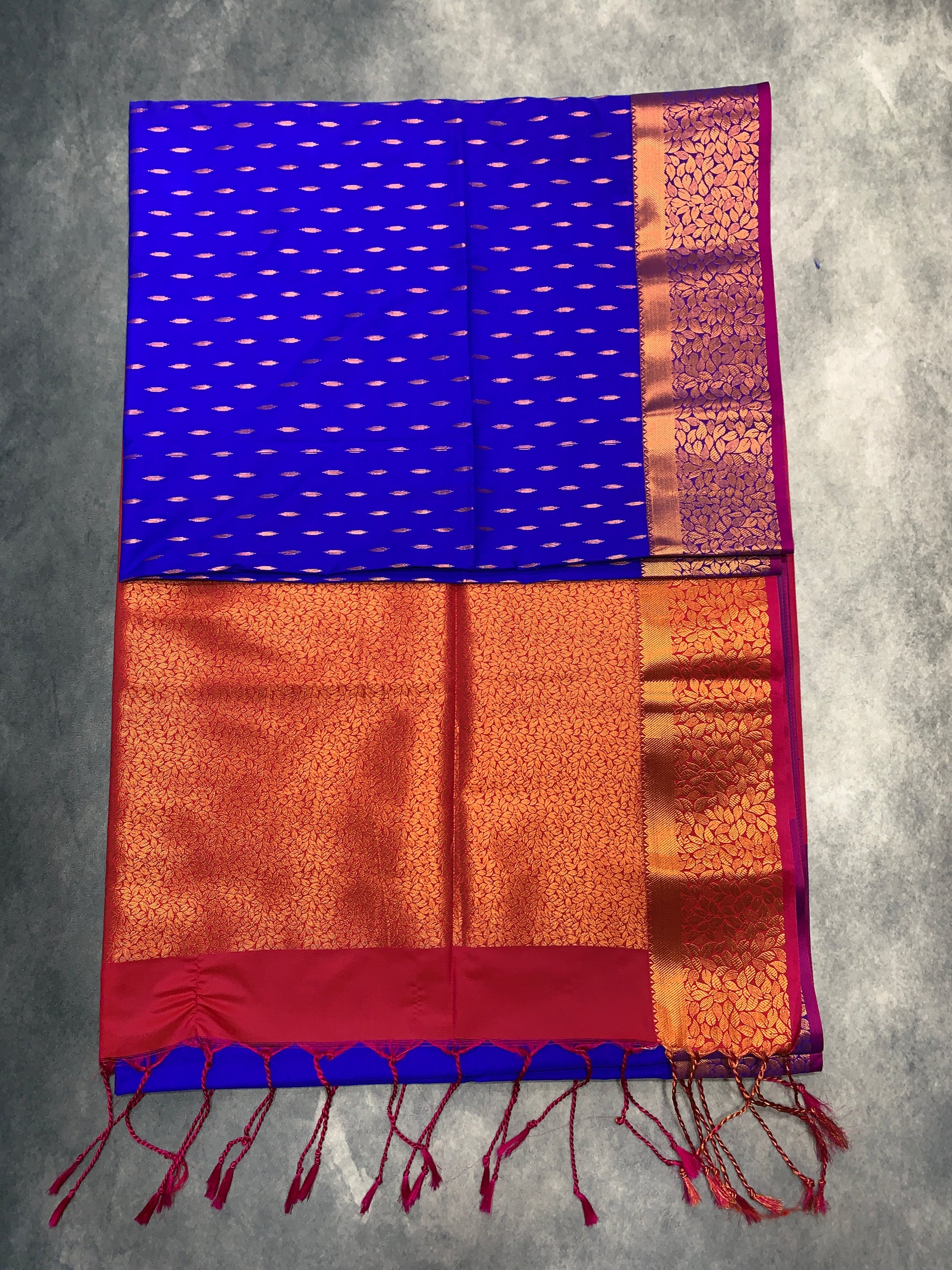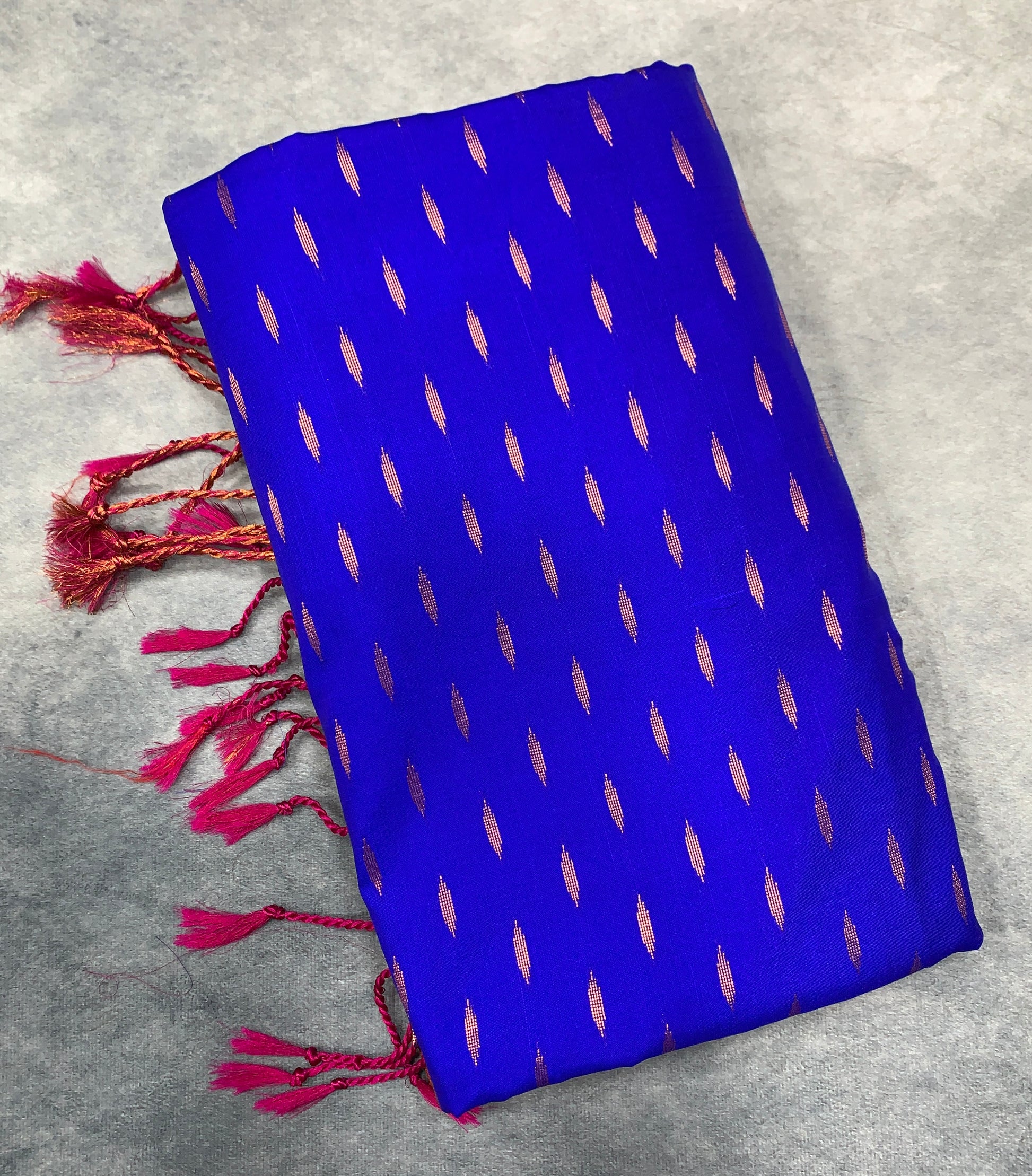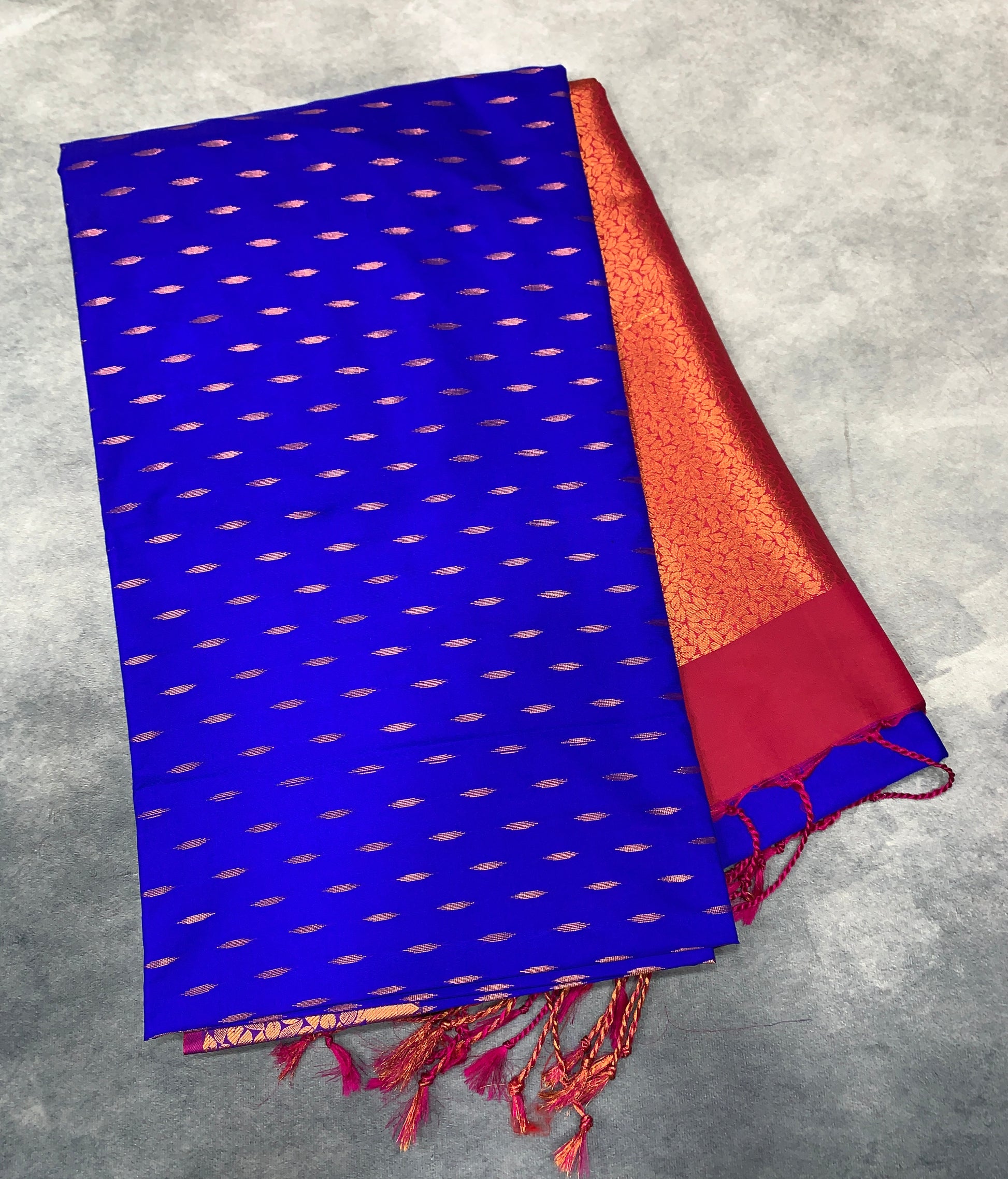 Soft Vegan Silk Saree Blue Colour with Pink and Copper Border