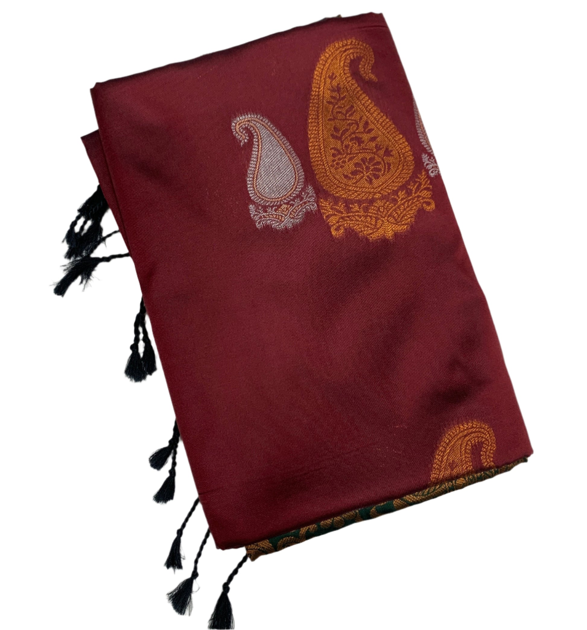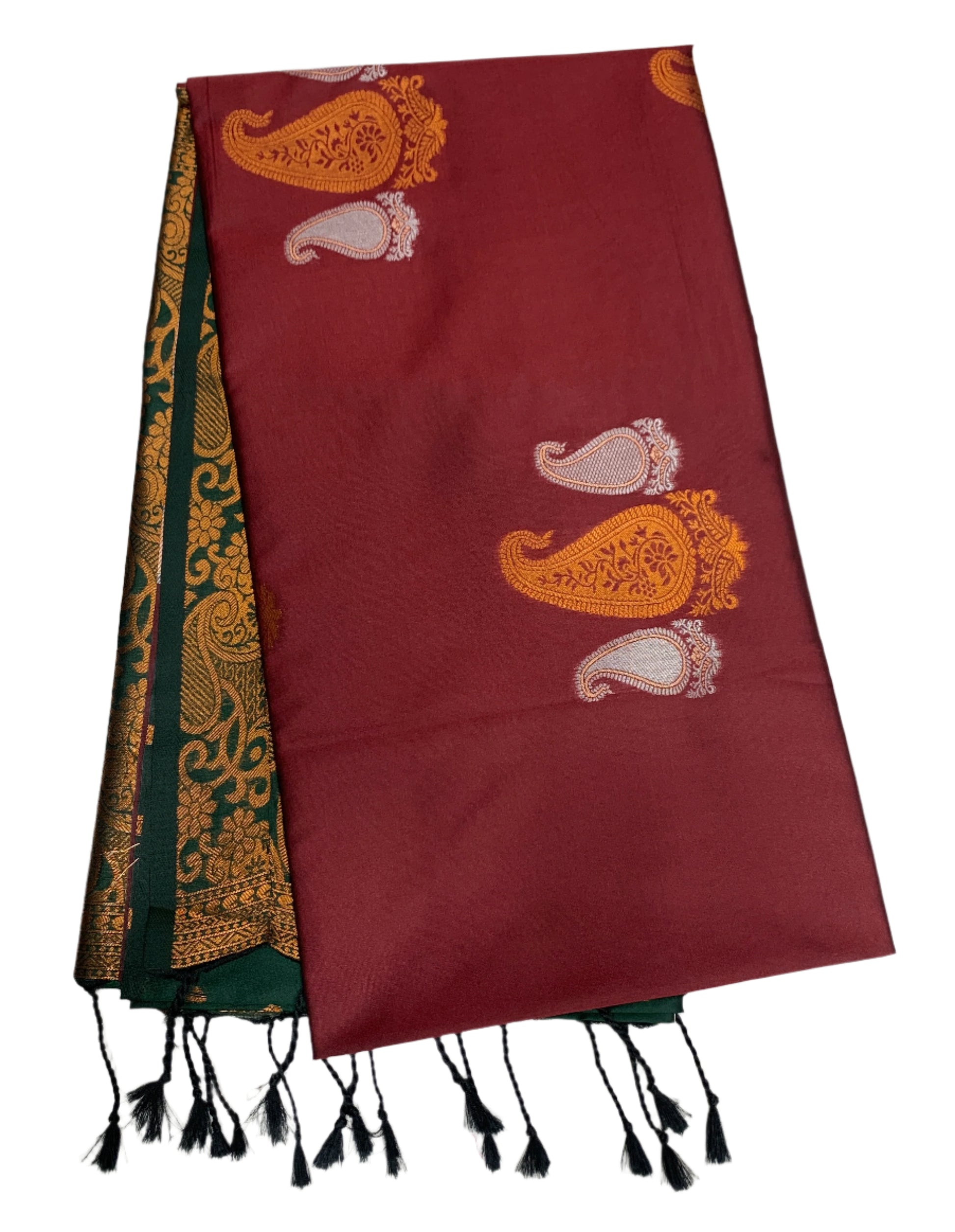 Soft Vegan Silk Saree Brown Colour with Border less .Light weight and easy to drape.
