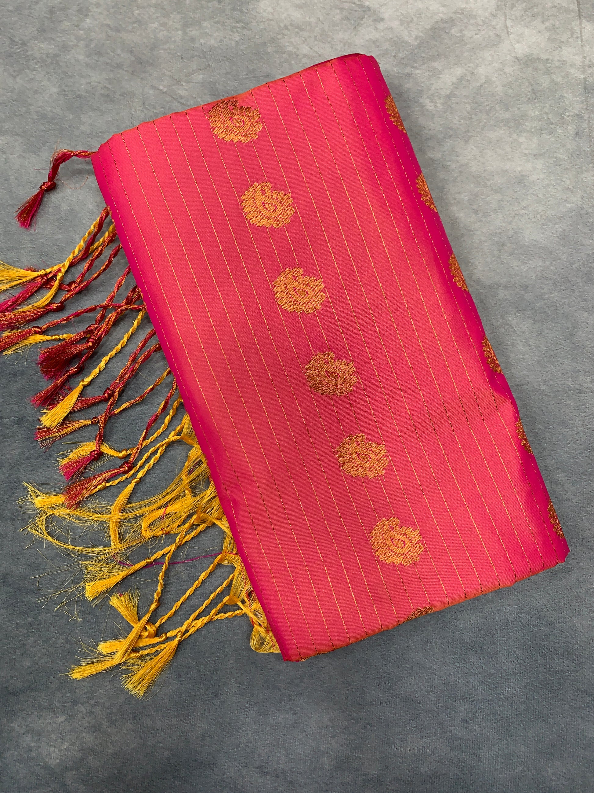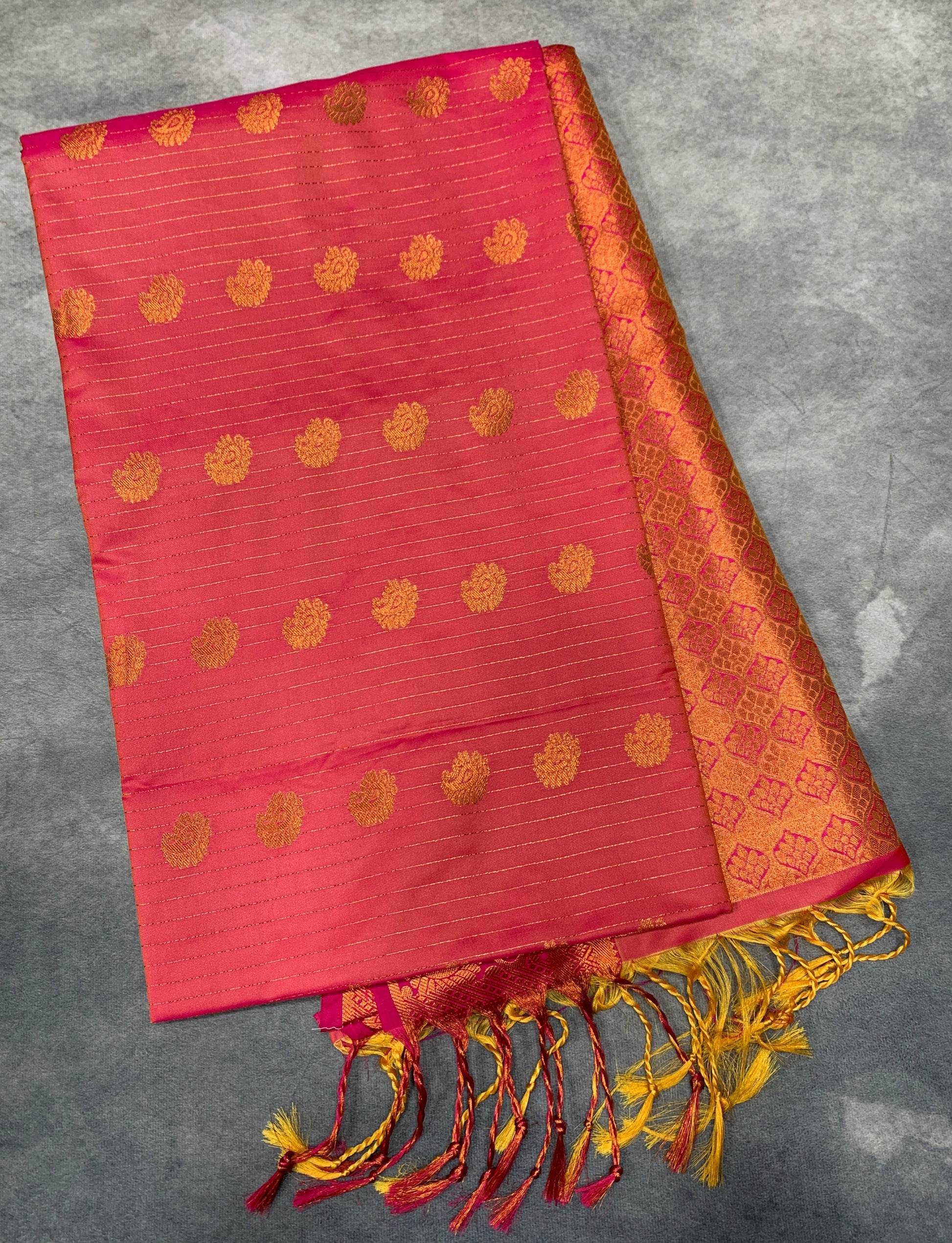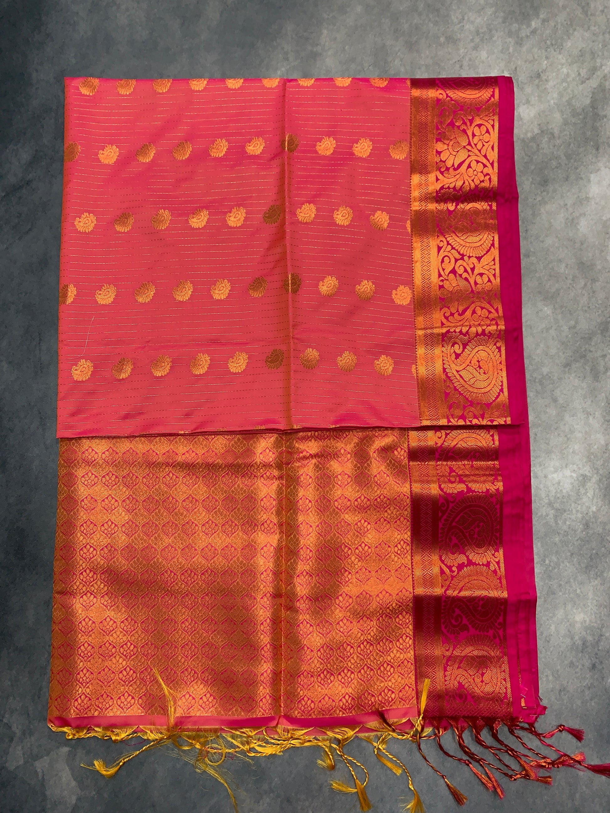 Soft Vegan Silk Saree Goldish Pink Colour with Pink and Copper Border