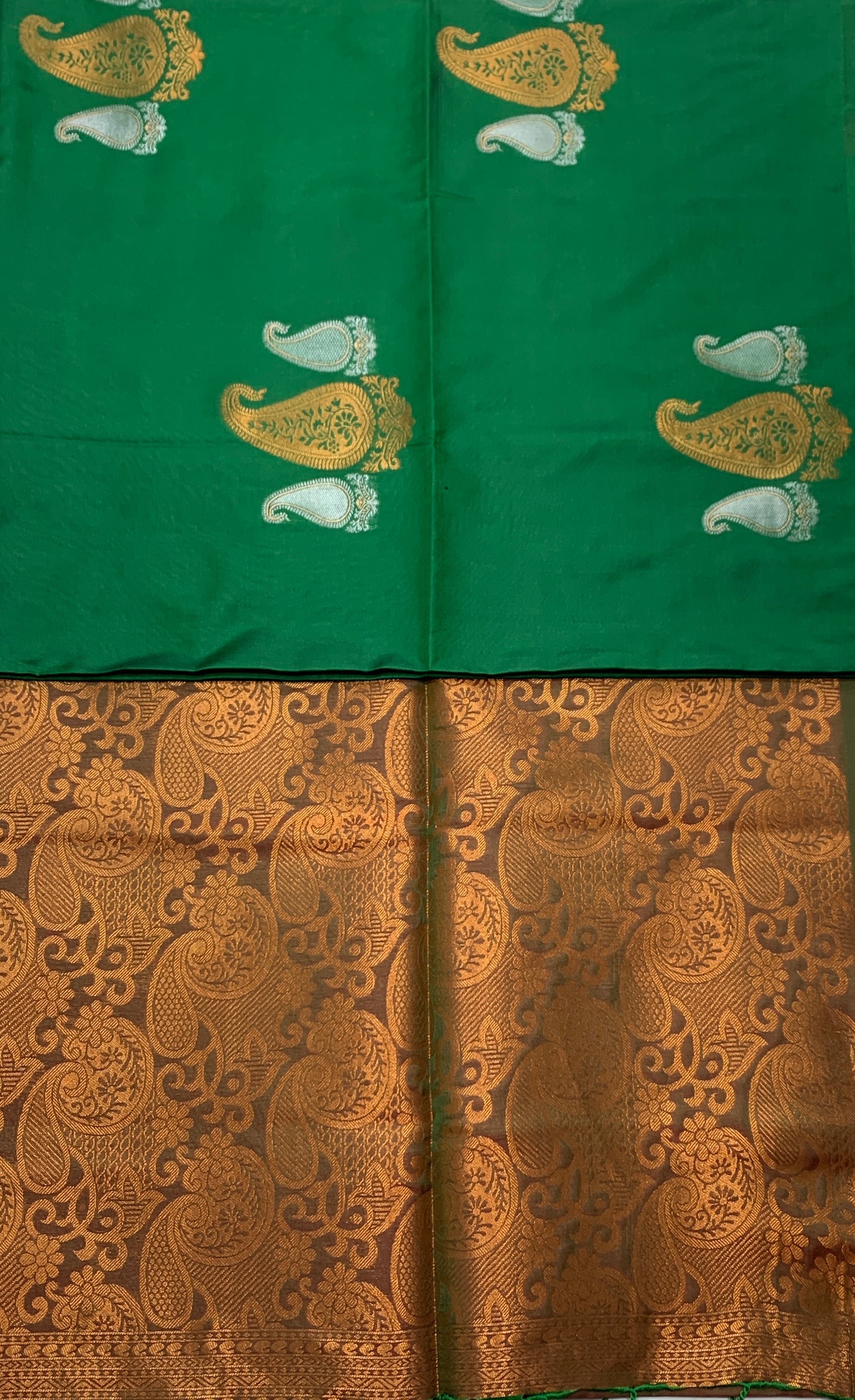 Soft Vegan Silk Saree Green Colour with Border less .Light weight and easy to drape.