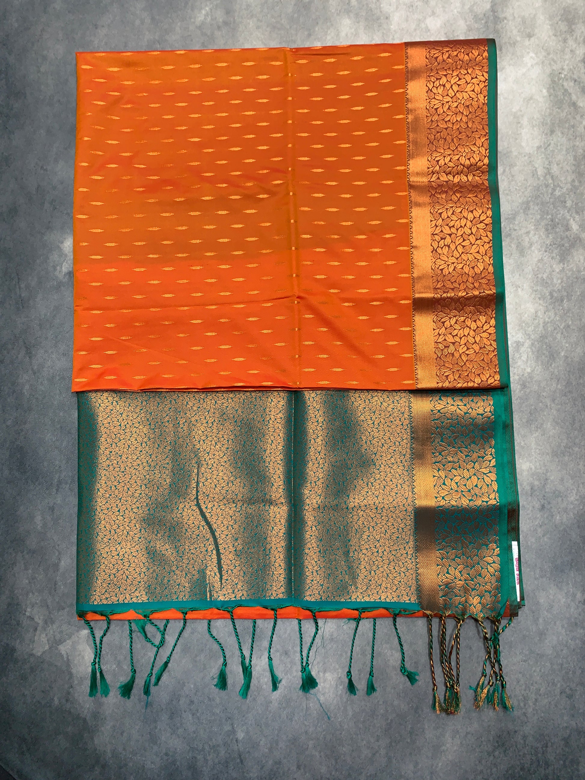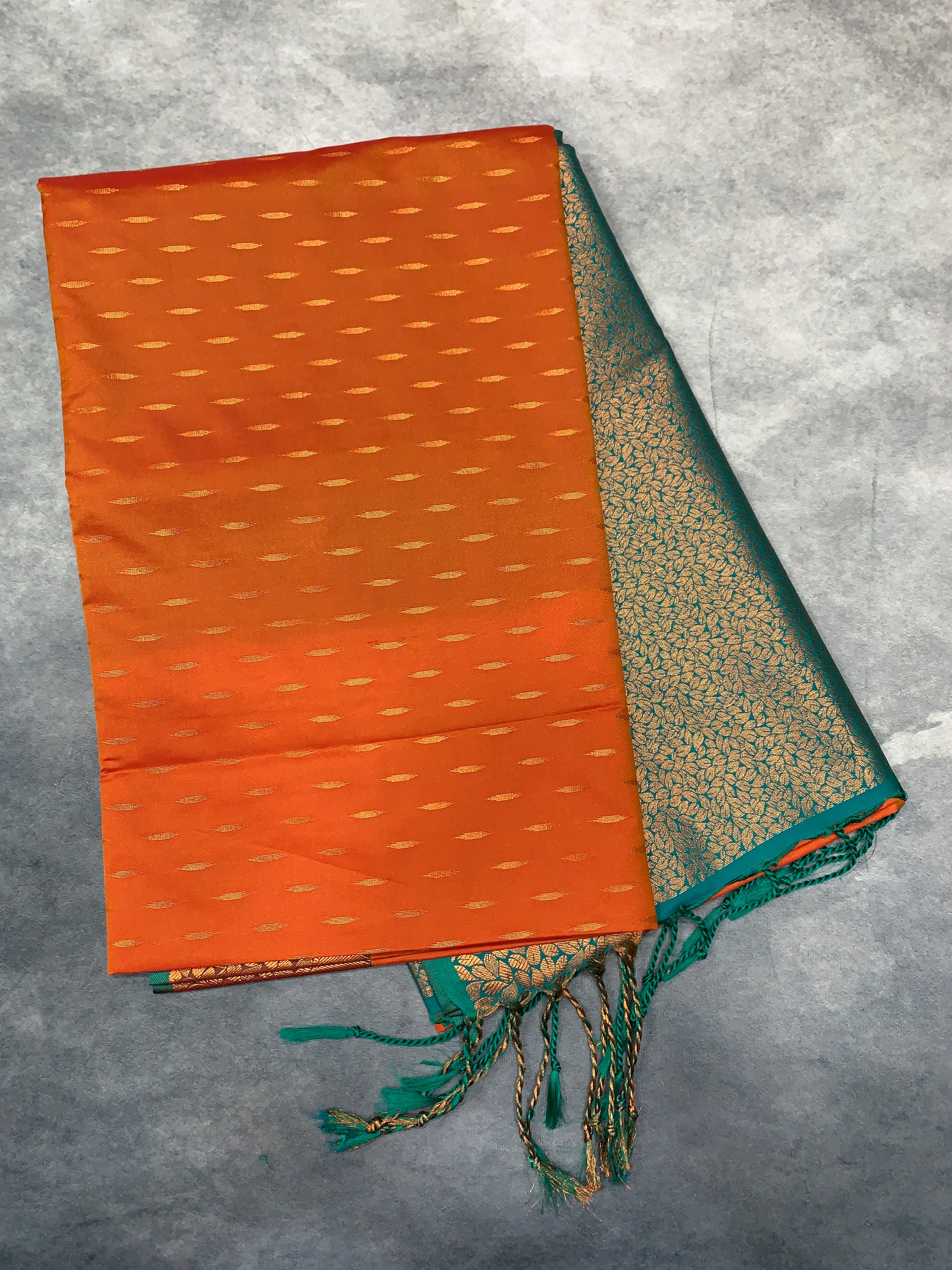 Body colour : Light Orange Colour with Copper Zari Buta