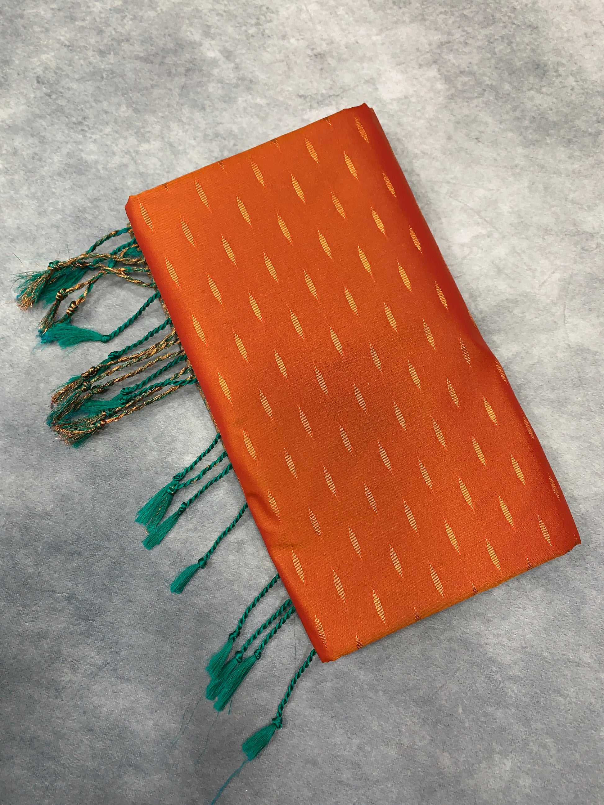 Soft Vegan Silk Saree Light Orange Colour with Green and Copper Border