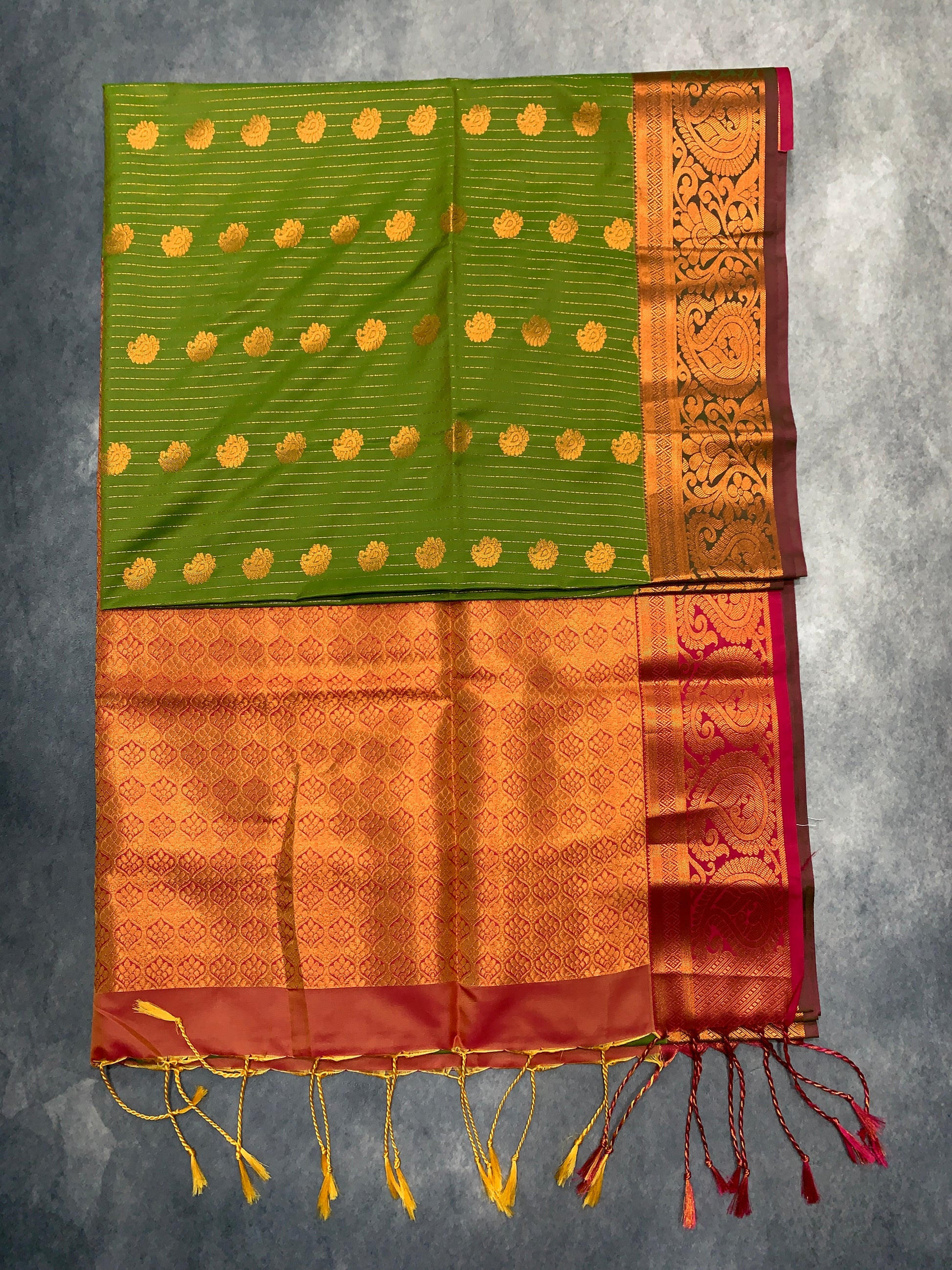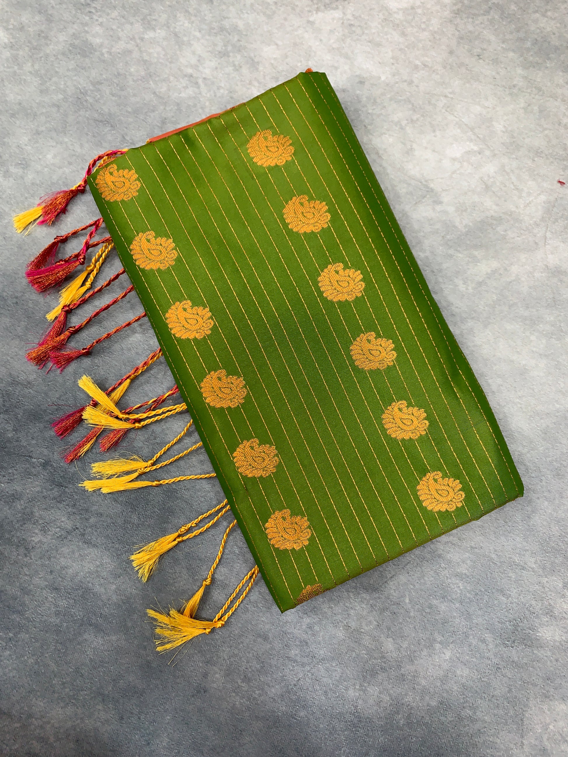Body colour : Olive Green Colour with Mango Zari Buta