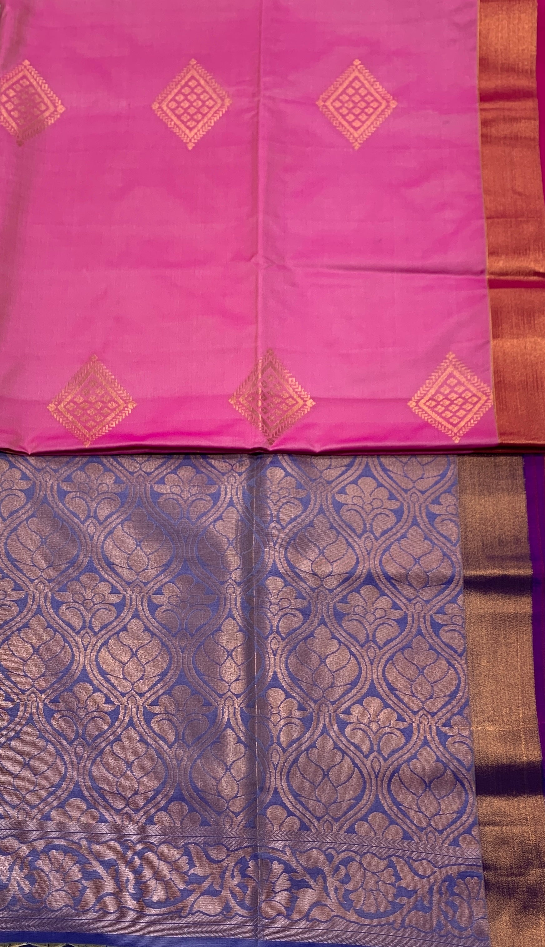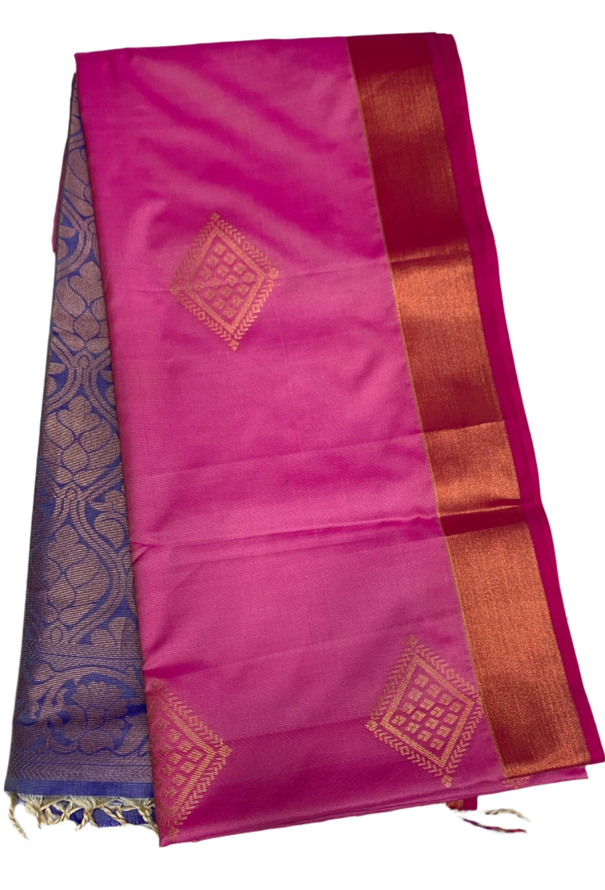 Soft Vegan Silk Pink Colour with Copper Border