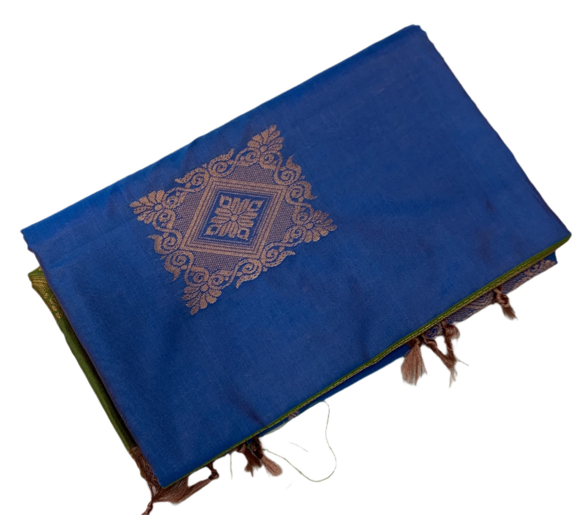 Soft Vegan Silk Saree Sky Blue Colour with Border less .Light weight and easy to drape.